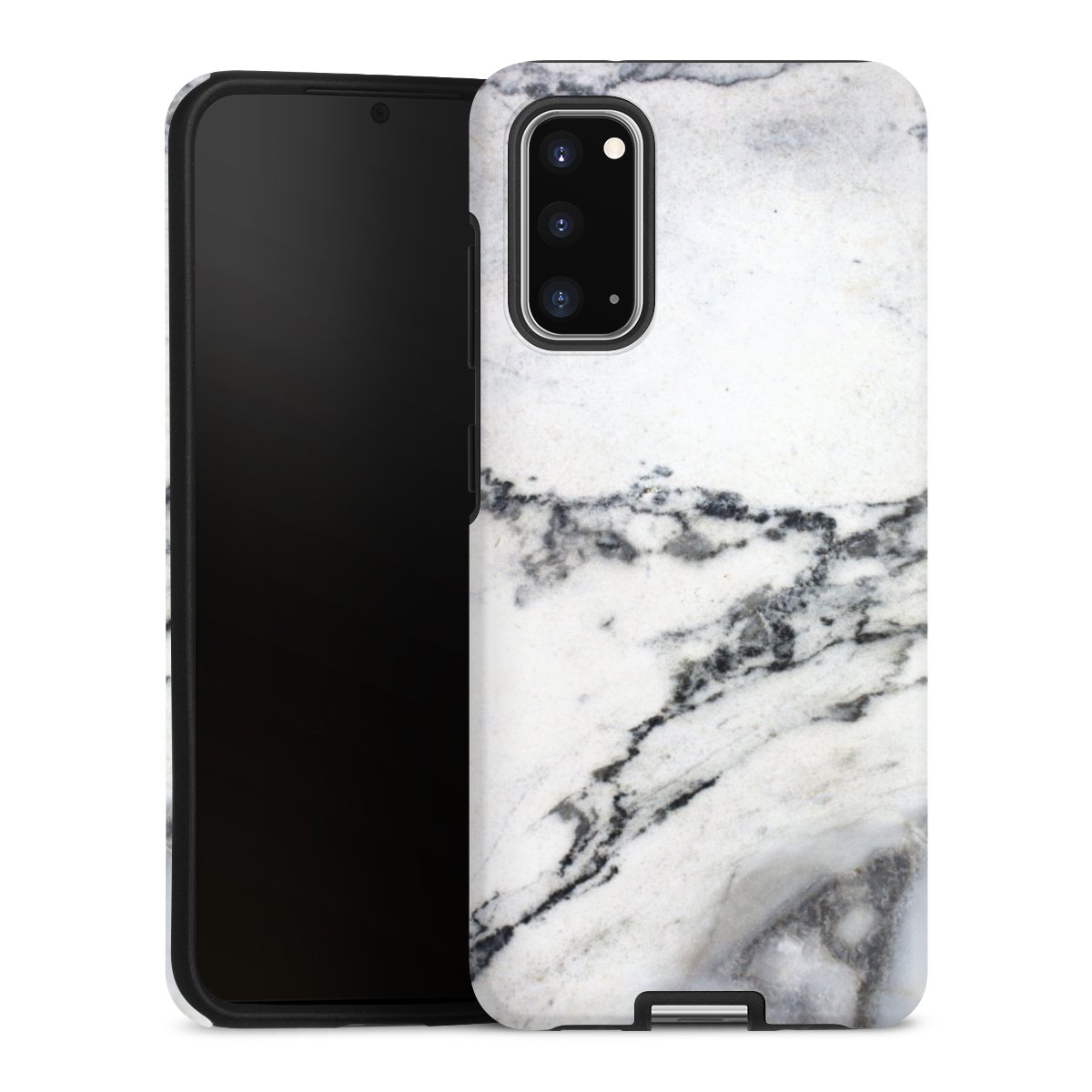 Unsere sicherste Schutzhülle vereint die Vorteile der Silikonhülle mit den Vorzügen des Premium Cases und besteht aus zwei Teilen: Innen federt der flexible Silikonkern aus robustem TPU (thermoplastisches Polyurethan) zuverlässig Stöße und Stürze ab, außen sorgt die widerstandsfähige und langlebige Hartschale aus Polycarbonat für zusätzliche Stabilität. Die Oberfläche der insgesamt 2,6 mm starken Hülle fühlt sich angenehm glatt an und macht das Tough Case zu einem echten Handschmeichler. Die Handyhülle ist in glänzend und matt erhältlich, der Silikoneinleger ist Schwarz.