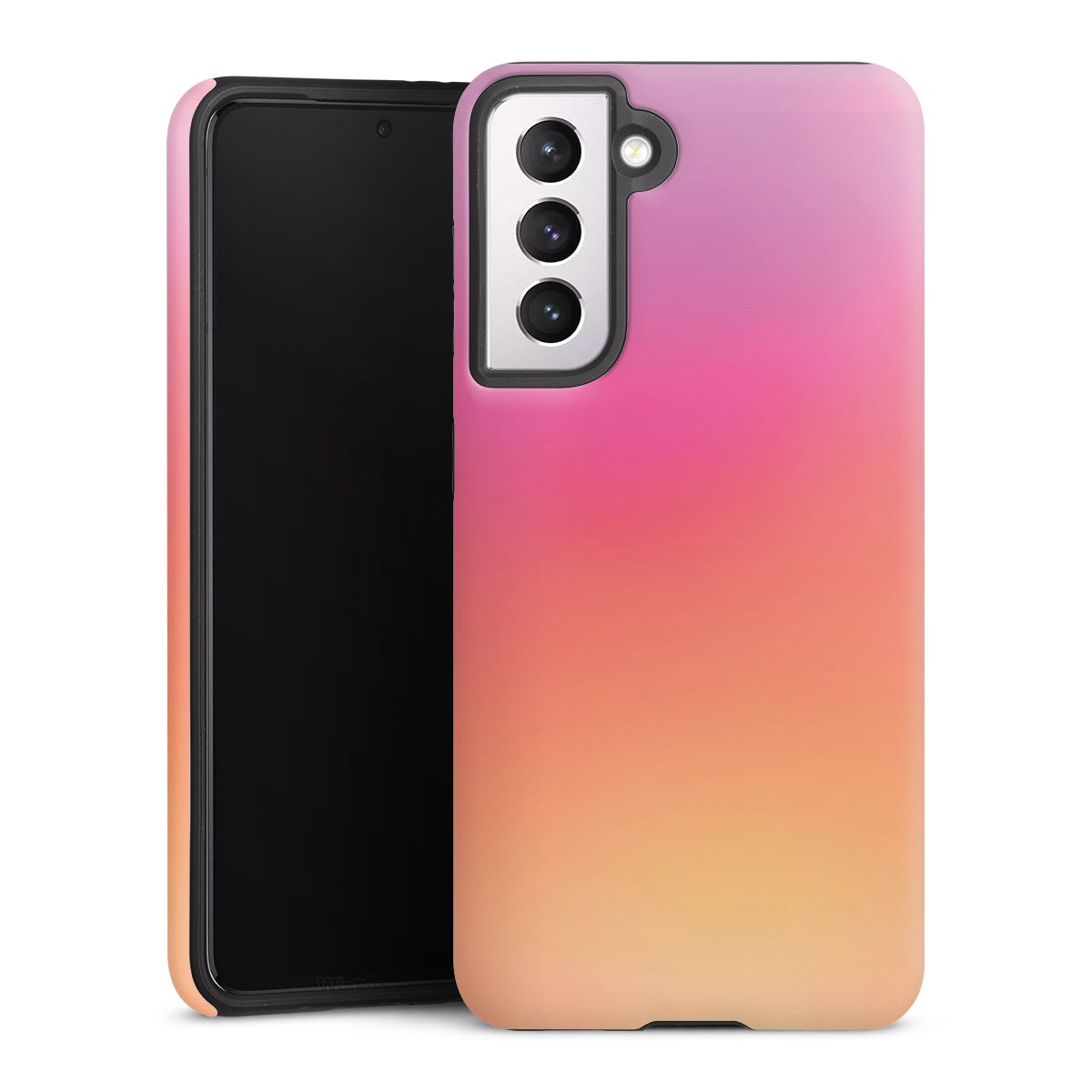 Bei dieser Handyhülle nutzen wird den besonders langlebigen Sublimationsdruck. Dieses raffinierte Druckverfahren sticht durch sein hochwertiges, gestochen scharfes Druckbild in brillanten Farben hervor. Der Druckbereich umfasst die ganze Hartschale inklusive der Ecken und Kanten, lediglich der Silikon-Einleger bleibt einfarbig schwarz. Wähle für Dein Design entweder eines unserer exklusiven Shop-Motive, oder werde kreativ und gestalte Dein Wunschdesign zum Beispiel mit Fotos und Overlays selbst.