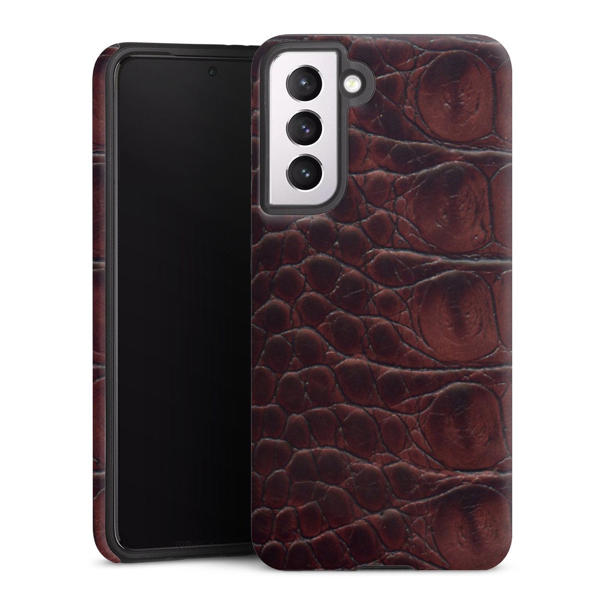 Unsere sicherste Schutzhülle vereint die Vorteile der Silikonhülle mit den Vorzügen des Premium Cases und besteht aus zwei Teilen: Innen federt der flexible Silikonkern aus robustem TPU (thermoplastisches Polyurethan) zuverlässig Stöße und Stürze ab, außen sorgt die widerstandsfähige und langlebige Hartschale aus Polycarbonat für zusätzliche Stabilität. Die Oberfläche der insgesamt 2,6 mm starken Hülle fühlt sich angenehm glatt an und macht das Tough Case zu einem echten Handschmeichler. Die Handyhülle ist in glänzend und matt erhältlich, der Silikoneinleger ist Schwarz.