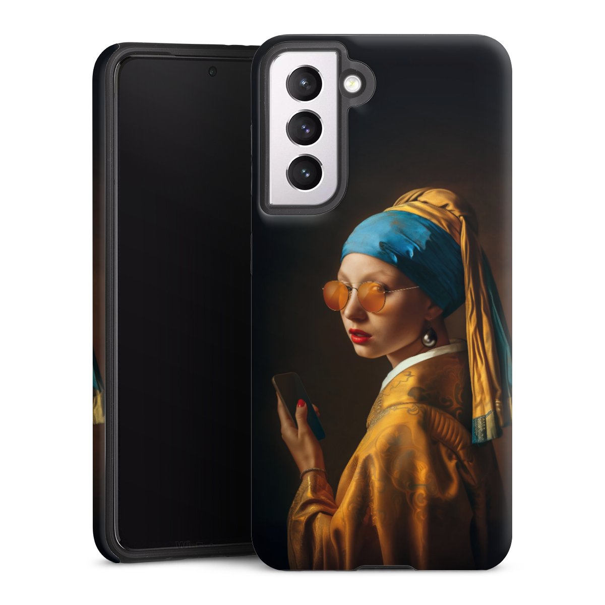 Bei dieser Handyhülle nutzen wird den besonders langlebigen Sublimationsdruck. Dieses raffinierte Druckverfahren sticht durch sein hochwertiges, gestochen scharfes Druckbild in brillanten Farben hervor. Der Druckbereich umfasst die ganze Hartschale inklusive der Ecken und Kanten, lediglich der Silikon-Einleger bleibt einfarbig schwarz. Wähle für Dein Design entweder eines unserer exklusiven Shop-Motive, oder werde kreativ und gestalte Dein Wunschdesign zum Beispiel mit Fotos und Overlays selbst.