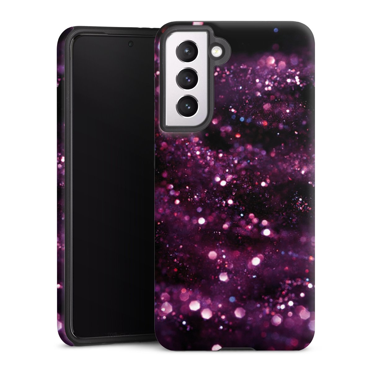 Bei dieser Handyhülle nutzen wird den besonders langlebigen Sublimationsdruck. Dieses raffinierte Druckverfahren sticht durch sein hochwertiges, gestochen scharfes Druckbild in brillanten Farben hervor. Der Druckbereich umfasst die ganze Hartschale inklusive der Ecken und Kanten, lediglich der Silikon-Einleger bleibt einfarbig schwarz. Wähle für Dein Design entweder eines unserer exklusiven Shop-Motive, oder werde kreativ und gestalte Dein Wunschdesign zum Beispiel mit Fotos und Overlays selbst.
