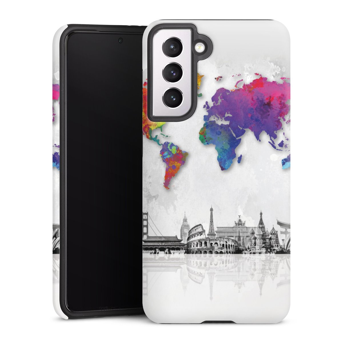 Bei dieser Handyhülle nutzen wird den besonders langlebigen Sublimationsdruck. Dieses raffinierte Druckverfahren sticht durch sein hochwertiges, gestochen scharfes Druckbild in brillanten Farben hervor. Der Druckbereich umfasst die ganze Hartschale inklusive der Ecken und Kanten, lediglich der Silikon-Einleger bleibt einfarbig schwarz. Wähle für Dein Design entweder eines unserer exklusiven Shop-Motive, oder werde kreativ und gestalte Dein Wunschdesign zum Beispiel mit Fotos und Overlays selbst.