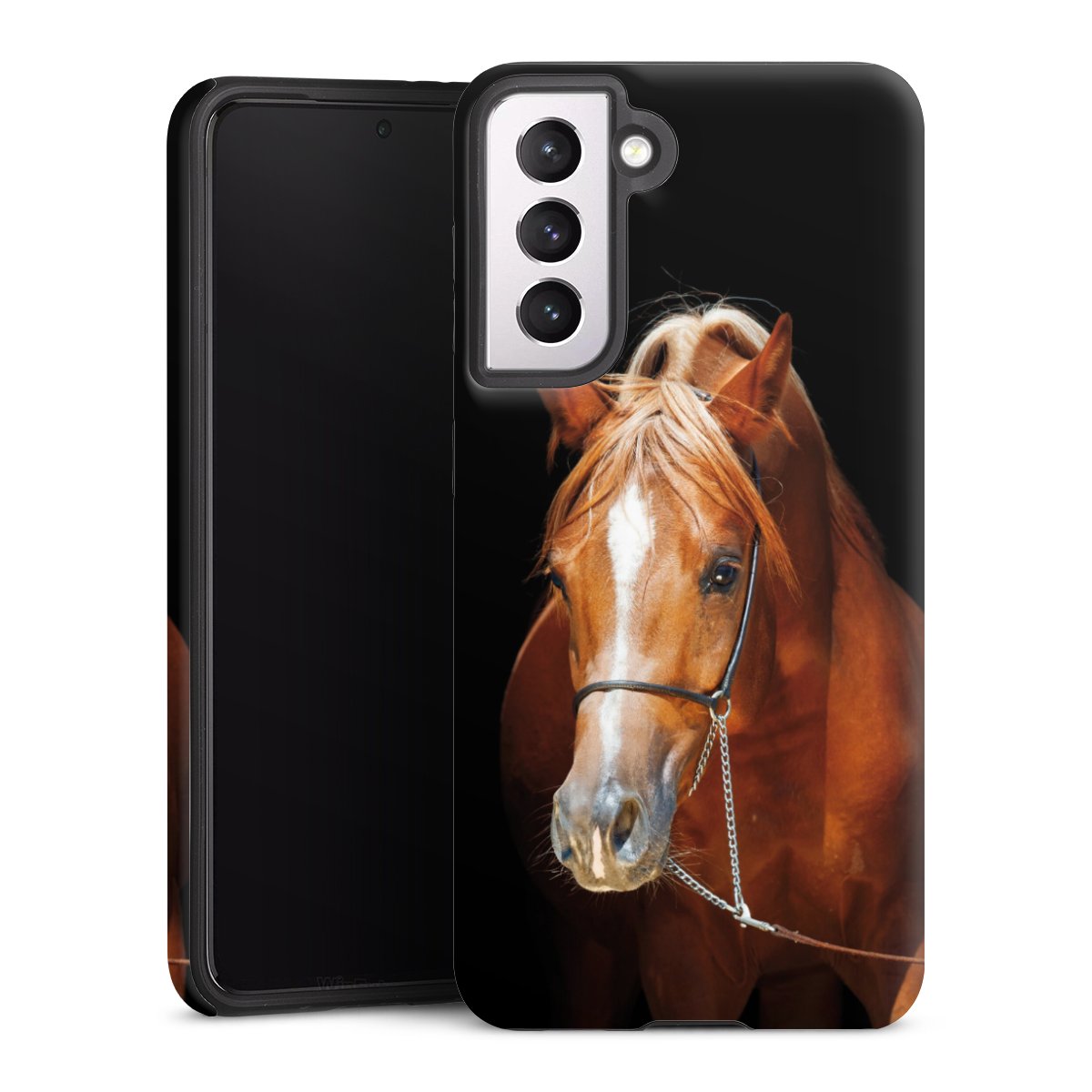 Bei dieser Handyhülle nutzen wird den besonders langlebigen Sublimationsdruck. Dieses raffinierte Druckverfahren sticht durch sein hochwertiges, gestochen scharfes Druckbild in brillanten Farben hervor. Der Druckbereich umfasst die ganze Hartschale inklusive der Ecken und Kanten, lediglich der Silikon-Einleger bleibt einfarbig schwarz. Wähle für Dein Design entweder eines unserer exklusiven Shop-Motive, oder werde kreativ und gestalte Dein Wunschdesign zum Beispiel mit Fotos und Overlays selbst.