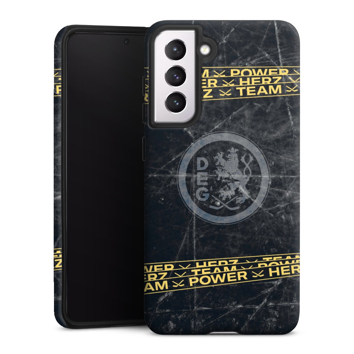 Bei dieser Handyhülle nutzen wird den besonders langlebigen Sublimationsdruck. Dieses raffinierte Druckverfahren sticht durch sein hochwertiges, gestochen scharfes Druckbild in brillanten Farben hervor. Der Druckbereich umfasst die ganze Hartschale inklusive der Ecken und Kanten, lediglich der Silikon-Einleger bleibt einfarbig schwarz. Wähle für Dein Design entweder eines unserer exklusiven Shop-Motive, oder werde kreativ und gestalte Dein Wunschdesign zum Beispiel mit Fotos und Overlays selbst.