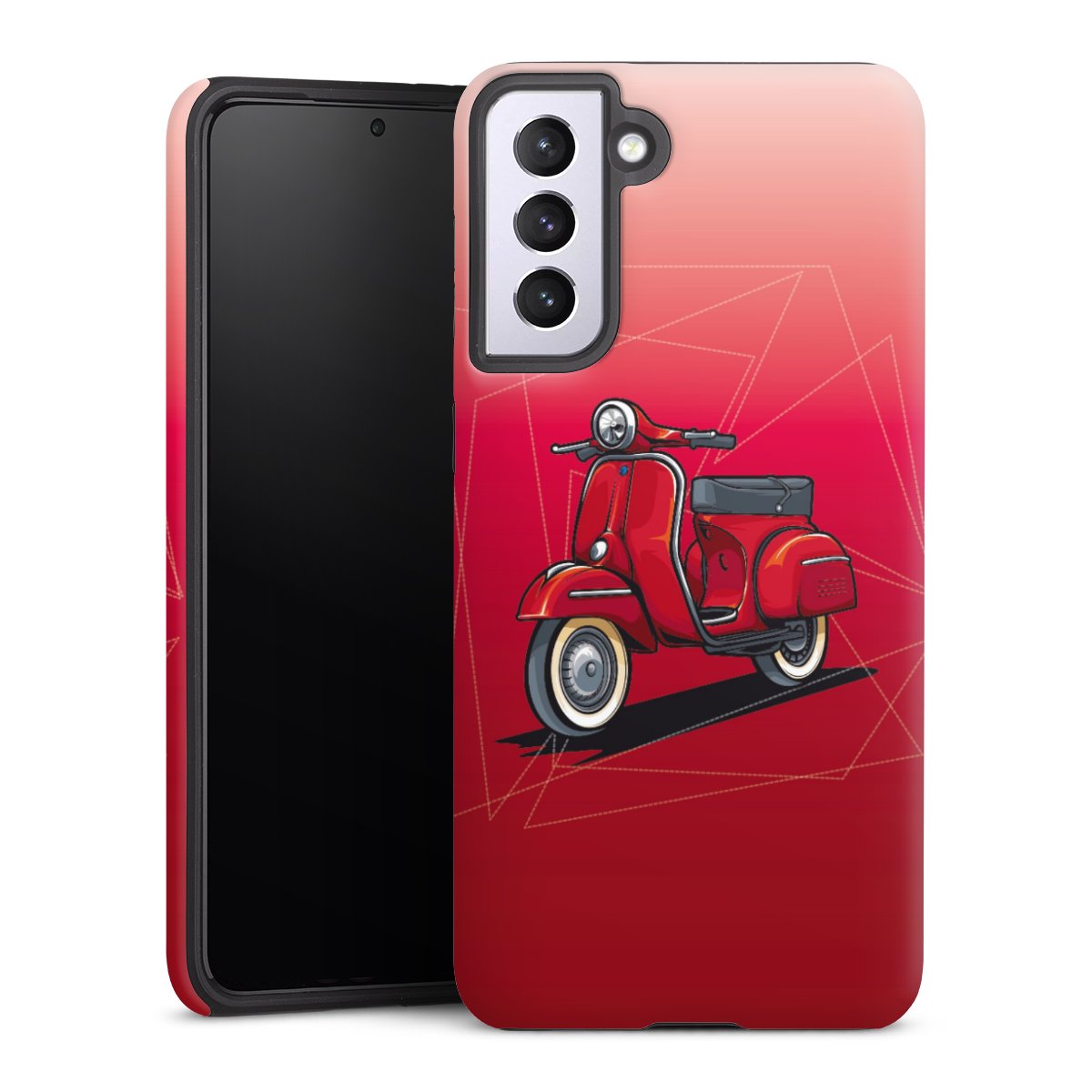 Bei dieser Handyhülle nutzen wird den besonders langlebigen Sublimationsdruck. Dieses raffinierte Druckverfahren sticht durch sein hochwertiges, gestochen scharfes Druckbild in brillanten Farben hervor. Der Druckbereich umfasst die ganze Hartschale inklusive der Ecken und Kanten, lediglich der Silikon-Einleger bleibt einfarbig schwarz. Wähle für Dein Design entweder eines unserer exklusiven Shop-Motive, oder werde kreativ und gestalte Dein Wunschdesign zum Beispiel mit Fotos und Overlays selbst.