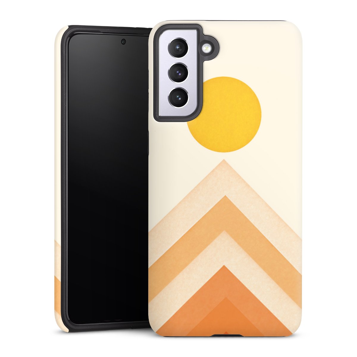 Bei dieser Handyhülle nutzen wird den besonders langlebigen Sublimationsdruck. Dieses raffinierte Druckverfahren sticht durch sein hochwertiges, gestochen scharfes Druckbild in brillanten Farben hervor. Der Druckbereich umfasst die ganze Hartschale inklusive der Ecken und Kanten, lediglich der Silikon-Einleger bleibt einfarbig schwarz. Wähle für Dein Design entweder eines unserer exklusiven Shop-Motive, oder werde kreativ und gestalte Dein Wunschdesign zum Beispiel mit Fotos und Overlays selbst.