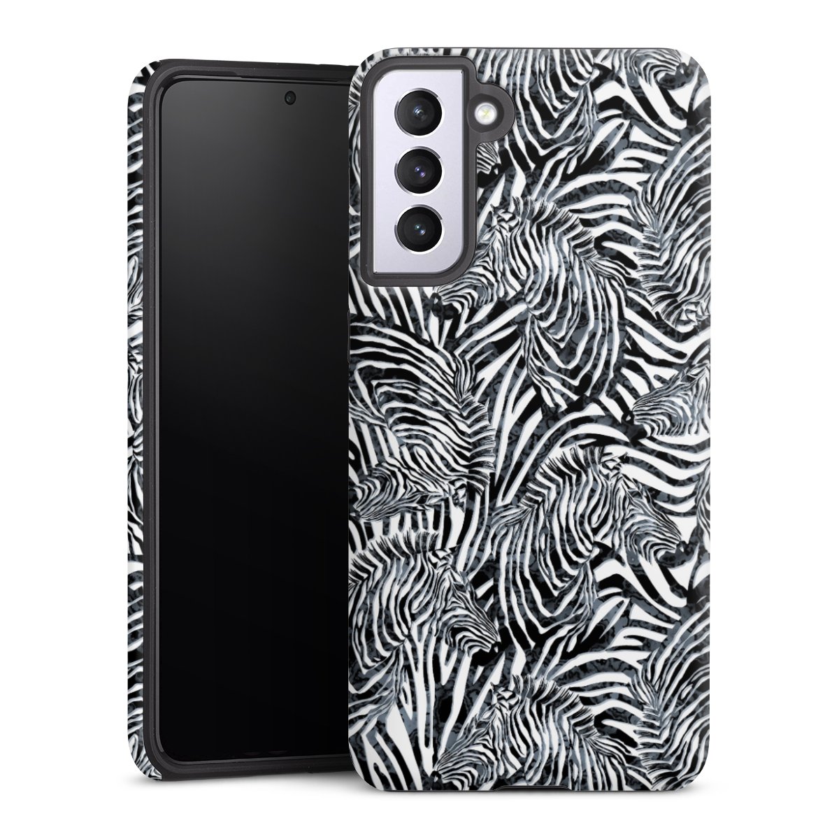 Bei dieser Handyhülle nutzen wird den besonders langlebigen Sublimationsdruck. Dieses raffinierte Druckverfahren sticht durch sein hochwertiges, gestochen scharfes Druckbild in brillanten Farben hervor. Der Druckbereich umfasst die ganze Hartschale inklusive der Ecken und Kanten, lediglich der Silikon-Einleger bleibt einfarbig schwarz. Wähle für Dein Design entweder eines unserer exklusiven Shop-Motive, oder werde kreativ und gestalte Dein Wunschdesign zum Beispiel mit Fotos und Overlays selbst.