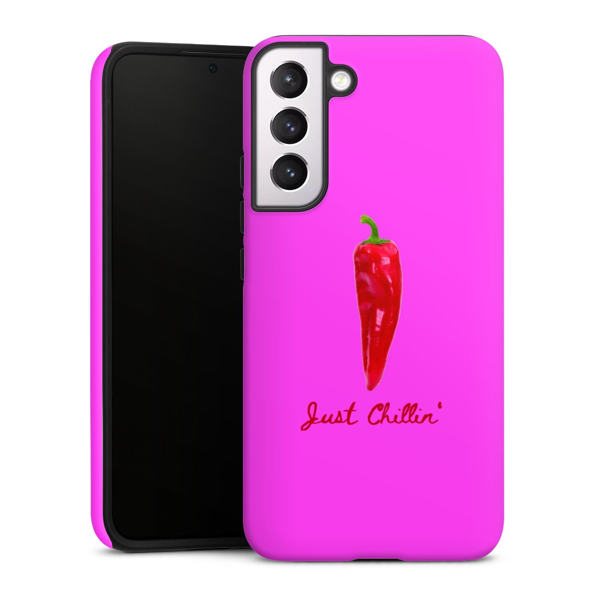 Bei dieser Handyhülle nutzen wird den besonders langlebigen Sublimationsdruck. Dieses raffinierte Druckverfahren sticht durch sein hochwertiges, gestochen scharfes Druckbild in brillanten Farben hervor. Der Druckbereich umfasst die ganze Hartschale inklusive der Ecken und Kanten, lediglich der Silikon-Einleger bleibt einfarbig schwarz. Wähle für Dein Design entweder eines unserer exklusiven Shop-Motive, oder werde kreativ und gestalte Dein Wunschdesign zum Beispiel mit Fotos und Overlays selbst.