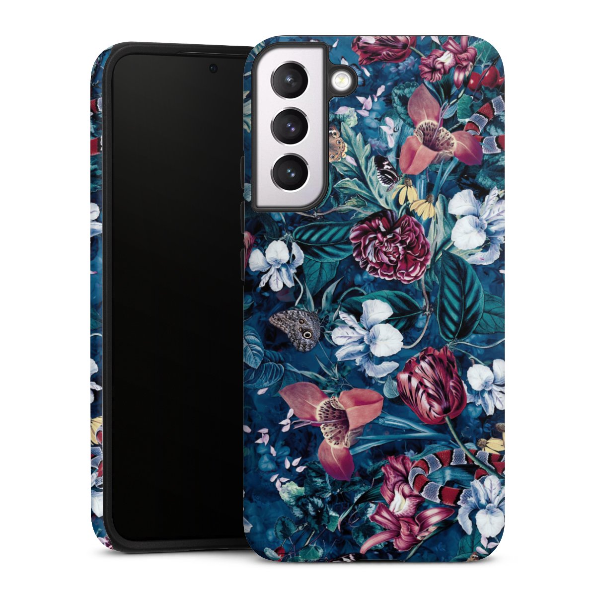 Bei dieser Handyhülle nutzen wird den besonders langlebigen Sublimationsdruck. Dieses raffinierte Druckverfahren sticht durch sein hochwertiges, gestochen scharfes Druckbild in brillanten Farben hervor. Der Druckbereich umfasst die ganze Hartschale inklusive der Ecken und Kanten, lediglich der Silikon-Einleger bleibt einfarbig schwarz. Wähle für Dein Design entweder eines unserer exklusiven Shop-Motive, oder werde kreativ und gestalte Dein Wunschdesign zum Beispiel mit Fotos und Overlays selbst.