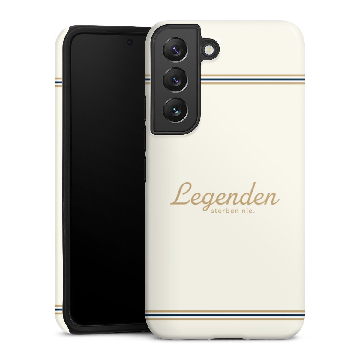 Bei dieser Handyhülle nutzen wird den besonders langlebigen Sublimationsdruck. Dieses raffinierte Druckverfahren sticht durch sein hochwertiges, gestochen scharfes Druckbild in brillanten Farben hervor. Der Druckbereich umfasst die ganze Hartschale inklusive der Ecken und Kanten, lediglich der Silikon-Einleger bleibt einfarbig schwarz. Wähle für Dein Design entweder eines unserer exklusiven Shop-Motive, oder werde kreativ und gestalte Dein Wunschdesign zum Beispiel mit Fotos und Overlays selbst.