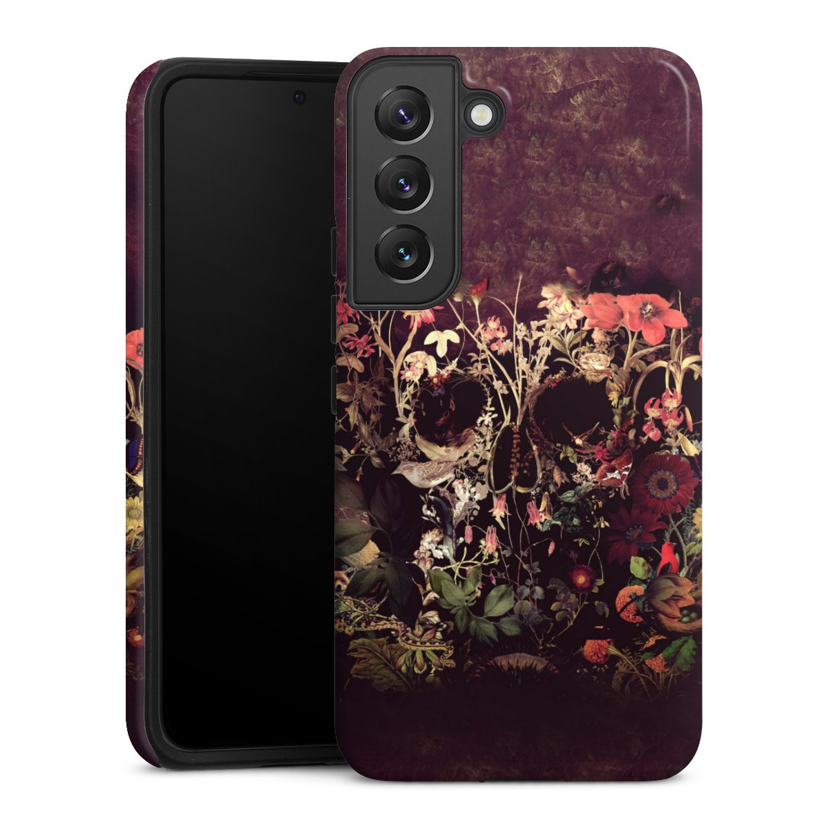Bei dieser Handyhülle nutzen wird den besonders langlebigen Sublimationsdruck. Dieses raffinierte Druckverfahren sticht durch sein hochwertiges, gestochen scharfes Druckbild in brillanten Farben hervor. Der Druckbereich umfasst die ganze Hartschale inklusive der Ecken und Kanten, lediglich der Silikon-Einleger bleibt einfarbig schwarz. Wähle für Dein Design entweder eines unserer exklusiven Shop-Motive, oder werde kreativ und gestalte Dein Wunschdesign zum Beispiel mit Fotos und Overlays selbst.