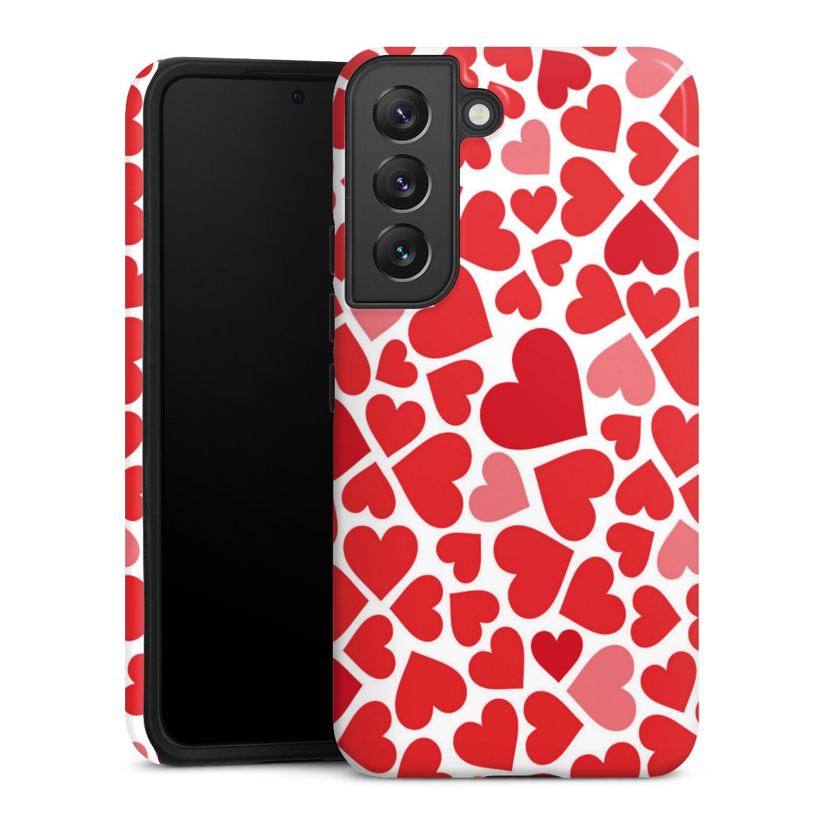 Bei dieser Handyhülle nutzen wird den besonders langlebigen Sublimationsdruck. Dieses raffinierte Druckverfahren sticht durch sein hochwertiges, gestochen scharfes Druckbild in brillanten Farben hervor. Der Druckbereich umfasst die ganze Hartschale inklusive der Ecken und Kanten, lediglich der Silikon-Einleger bleibt einfarbig schwarz. Wähle für Dein Design entweder eines unserer exklusiven Shop-Motive, oder werde kreativ und gestalte Dein Wunschdesign zum Beispiel mit Fotos und Overlays selbst.