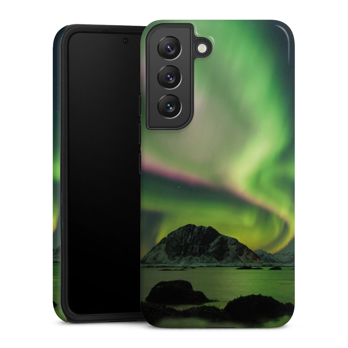 Bei dieser Handyhülle nutzen wird den besonders langlebigen Sublimationsdruck. Dieses raffinierte Druckverfahren sticht durch sein hochwertiges, gestochen scharfes Druckbild in brillanten Farben hervor. Der Druckbereich umfasst die ganze Hartschale inklusive der Ecken und Kanten, lediglich der Silikon-Einleger bleibt einfarbig schwarz. Wähle für Dein Design entweder eines unserer exklusiven Shop-Motive, oder werde kreativ und gestalte Dein Wunschdesign zum Beispiel mit Fotos und Overlays selbst.