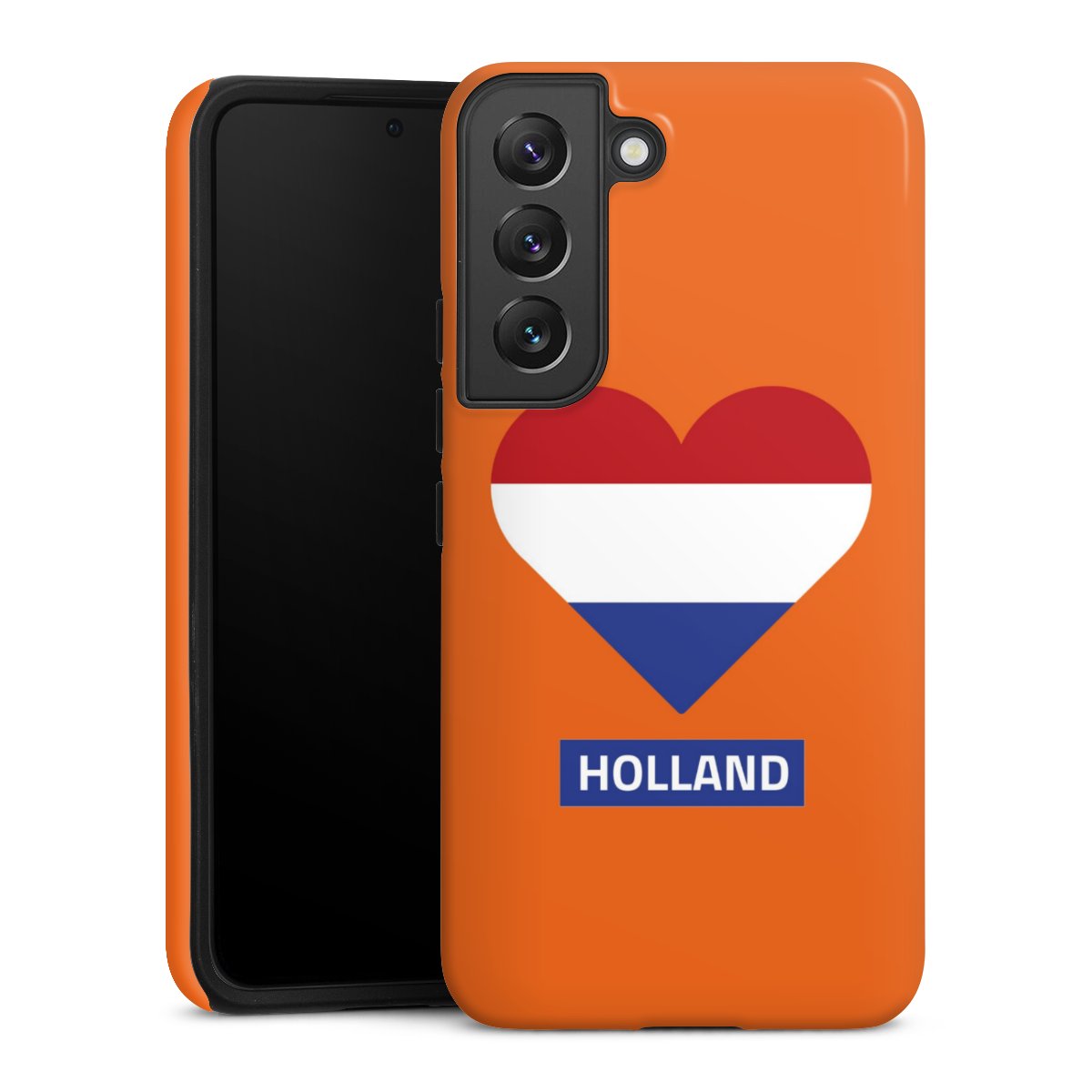 Bei dieser Handyhülle nutzen wird den besonders langlebigen Sublimationsdruck. Dieses raffinierte Druckverfahren sticht durch sein hochwertiges, gestochen scharfes Druckbild in brillanten Farben hervor. Der Druckbereich umfasst die ganze Hartschale inklusive der Ecken und Kanten, lediglich der Silikon-Einleger bleibt einfarbig schwarz. Wähle für Dein Design entweder eines unserer exklusiven Shop-Motive, oder werde kreativ und gestalte Dein Wunschdesign zum Beispiel mit Fotos und Overlays selbst.