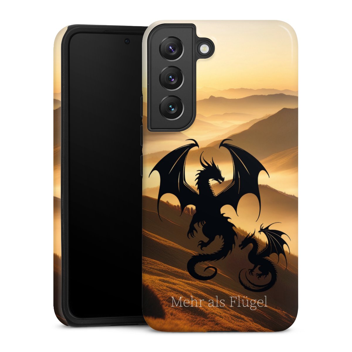 Bei dieser Handyhülle nutzen wird den besonders langlebigen Sublimationsdruck. Dieses raffinierte Druckverfahren sticht durch sein hochwertiges, gestochen scharfes Druckbild in brillanten Farben hervor. Der Druckbereich umfasst die ganze Hartschale inklusive der Ecken und Kanten, lediglich der Silikon-Einleger bleibt einfarbig schwarz. Wähle für Dein Design entweder eines unserer exklusiven Shop-Motive, oder werde kreativ und gestalte Dein Wunschdesign zum Beispiel mit Fotos und Overlays selbst.