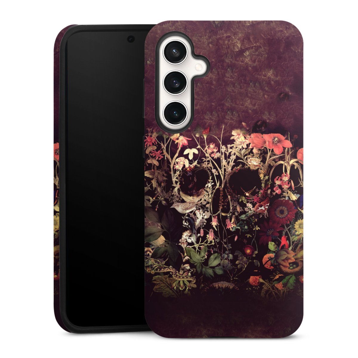 Bei dieser Handyhülle nutzen wird den besonders langlebigen Sublimationsdruck. Dieses raffinierte Druckverfahren sticht durch sein hochwertiges, gestochen scharfes Druckbild in brillanten Farben hervor. Der Druckbereich umfasst die ganze Hartschale inklusive der Ecken und Kanten, lediglich der Silikon-Einleger bleibt einfarbig schwarz. Wähle für Dein Design entweder eines unserer exklusiven Shop-Motive, oder werde kreativ und gestalte Dein Wunschdesign zum Beispiel mit Fotos und Overlays selbst.
