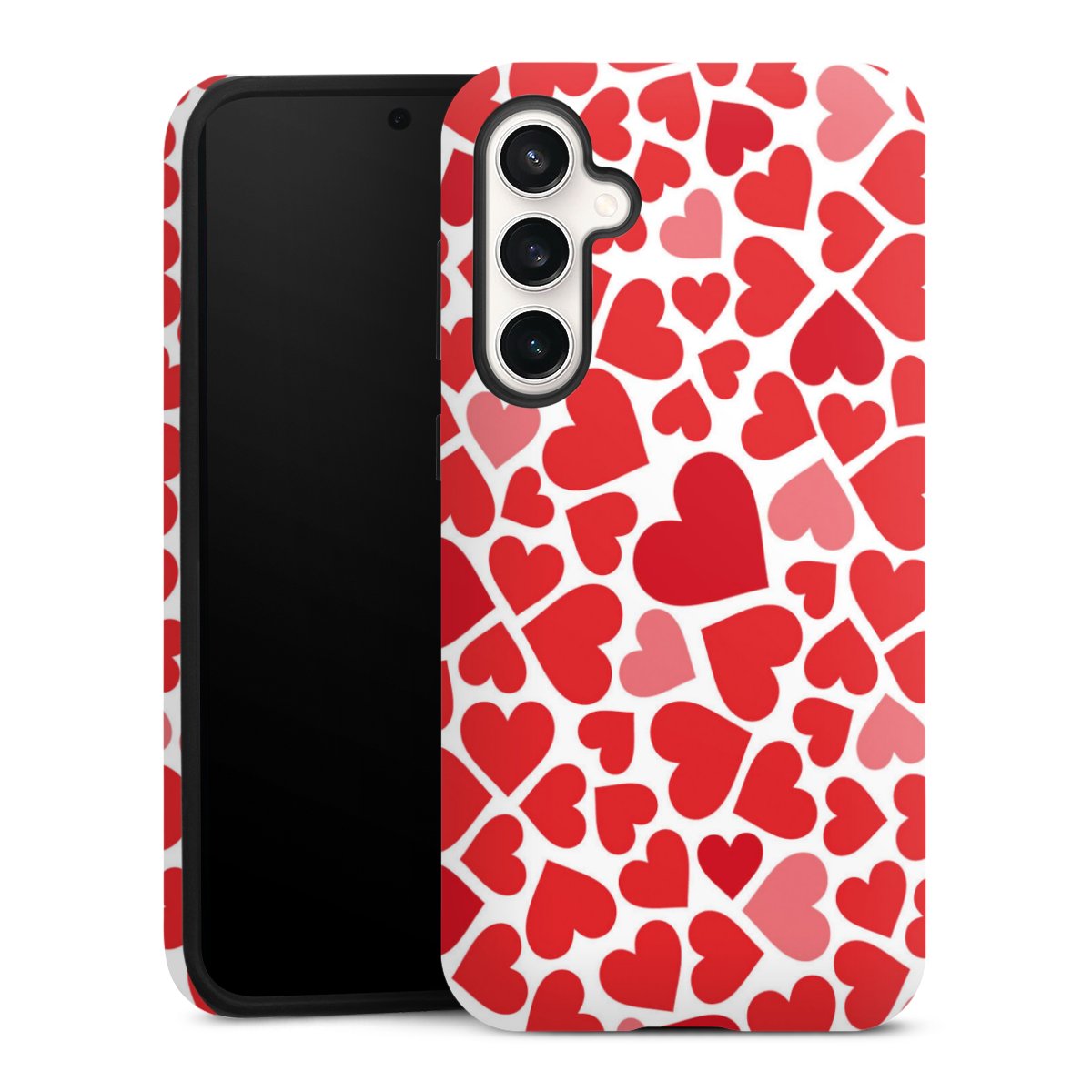 Bei dieser Handyhülle nutzen wird den besonders langlebigen Sublimationsdruck. Dieses raffinierte Druckverfahren sticht durch sein hochwertiges, gestochen scharfes Druckbild in brillanten Farben hervor. Der Druckbereich umfasst die ganze Hartschale inklusive der Ecken und Kanten, lediglich der Silikon-Einleger bleibt einfarbig schwarz. Wähle für Dein Design entweder eines unserer exklusiven Shop-Motive, oder werde kreativ und gestalte Dein Wunschdesign zum Beispiel mit Fotos und Overlays selbst.