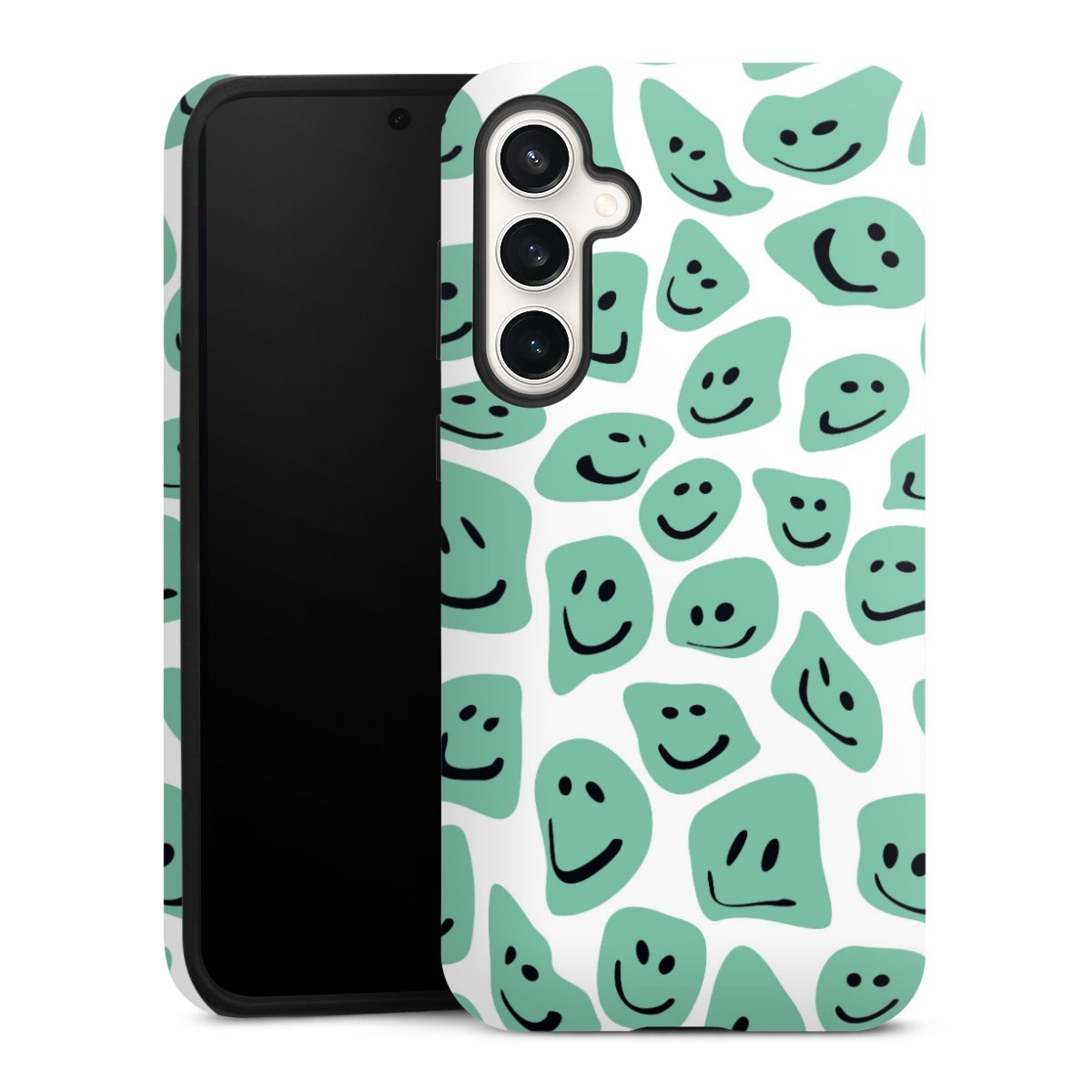Bei dieser Handyhülle nutzen wird den besonders langlebigen Sublimationsdruck. Dieses raffinierte Druckverfahren sticht durch sein hochwertiges, gestochen scharfes Druckbild in brillanten Farben hervor. Der Druckbereich umfasst die ganze Hartschale inklusive der Ecken und Kanten, lediglich der Silikon-Einleger bleibt einfarbig schwarz. Wähle für Dein Design entweder eines unserer exklusiven Shop-Motive, oder werde kreativ und gestalte Dein Wunschdesign zum Beispiel mit Fotos und Overlays selbst.