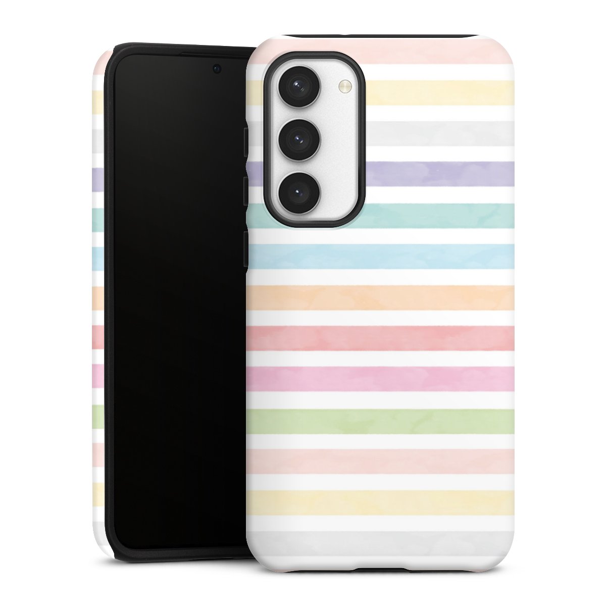Bei dieser Handyhülle nutzen wird den besonders langlebigen Sublimationsdruck. Dieses raffinierte Druckverfahren sticht durch sein hochwertiges, gestochen scharfes Druckbild in brillanten Farben hervor. Der Druckbereich umfasst die ganze Hartschale inklusive der Ecken und Kanten, lediglich der Silikon-Einleger bleibt einfarbig schwarz. Wähle für Dein Design entweder eines unserer exklusiven Shop-Motive, oder werde kreativ und gestalte Dein Wunschdesign zum Beispiel mit Fotos und Overlays selbst.