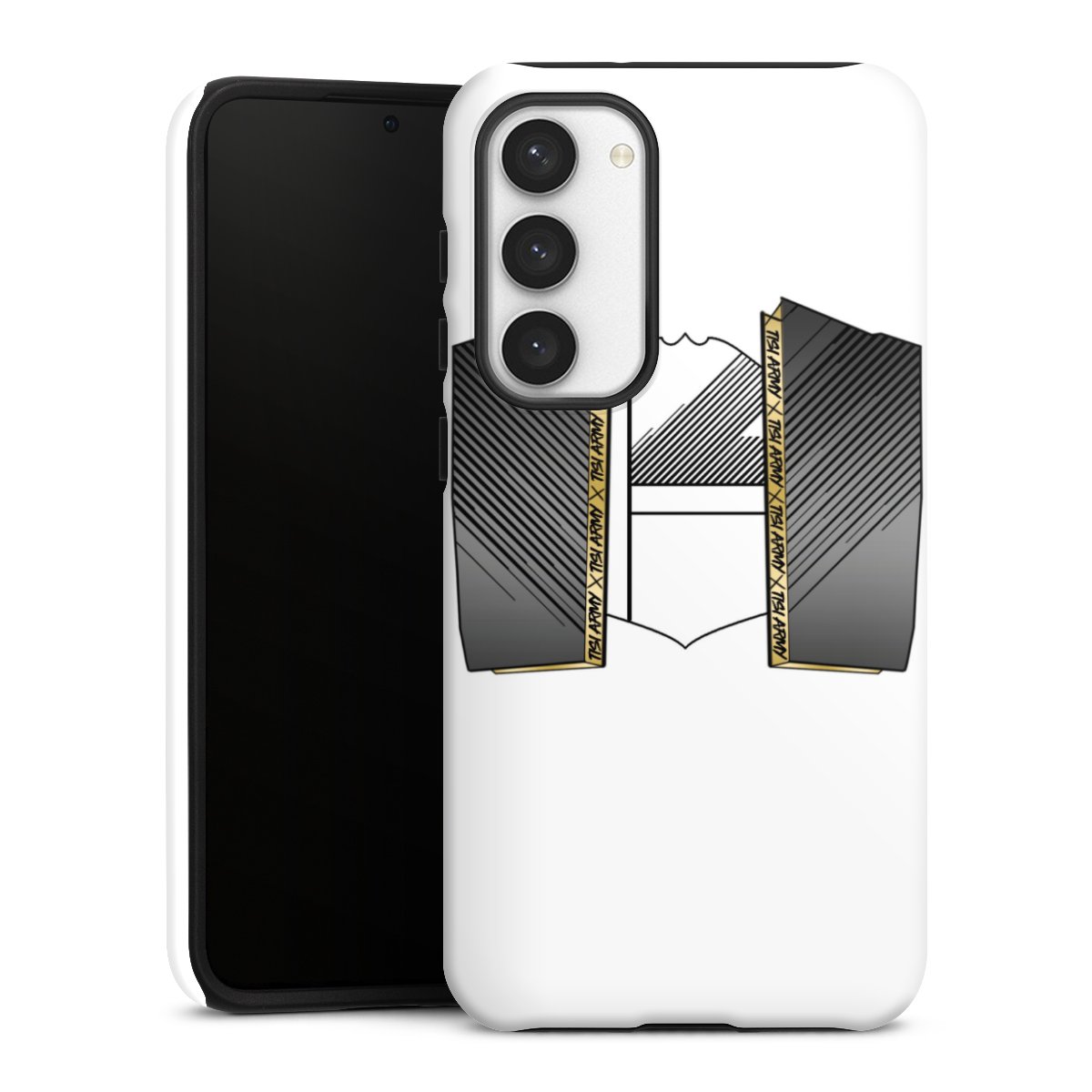 Unsere sicherste Schutzhülle vereint die Vorteile der Silikonhülle mit den Vorzügen des Premium Cases und besteht aus zwei Teilen: Innen federt der flexible Silikonkern aus robustem TPU (thermoplastisches Polyurethan) zuverlässig Stöße und Stürze ab, außen sorgt die widerstandsfähige und langlebige Hartschale aus Polycarbonat für zusätzliche Stabilität. Die Oberfläche der insgesamt 2,6 mm starken Hülle fühlt sich angenehm glatt an und macht das Tough Case zu einem echten Handschmeichler. Die Handyhülle ist in glänzend und matt erhältlich, der Silikoneinleger ist Schwarz.