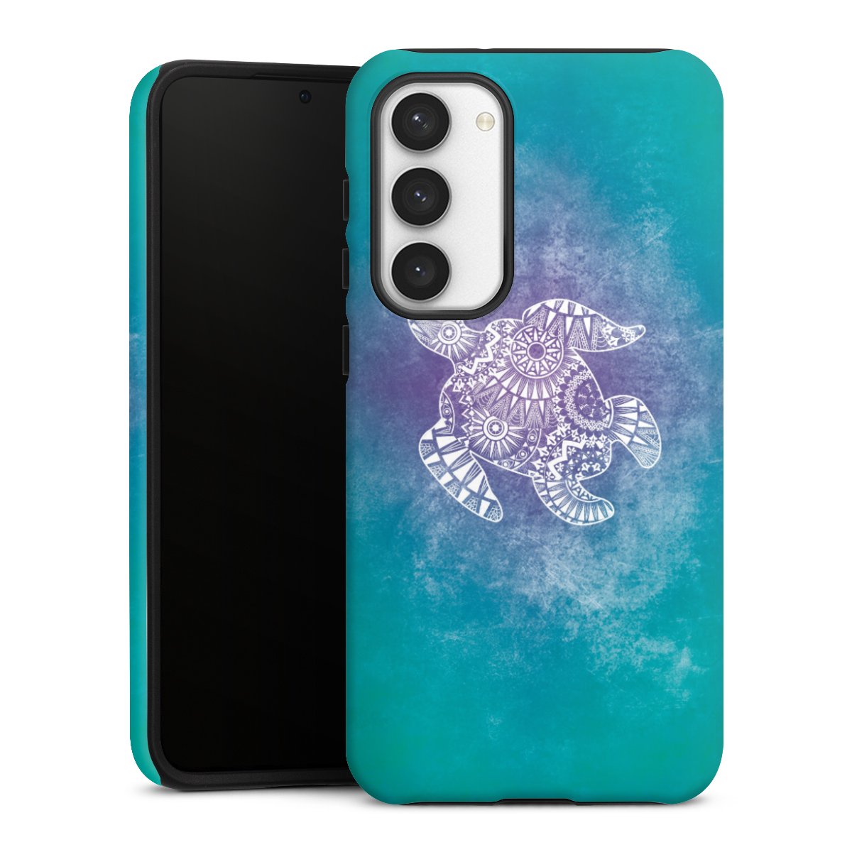 Bei dieser Handyhülle nutzen wird den besonders langlebigen Sublimationsdruck. Dieses raffinierte Druckverfahren sticht durch sein hochwertiges, gestochen scharfes Druckbild in brillanten Farben hervor. Der Druckbereich umfasst die ganze Hartschale inklusive der Ecken und Kanten, lediglich der Silikon-Einleger bleibt einfarbig schwarz. Wähle für Dein Design entweder eines unserer exklusiven Shop-Motive, oder werde kreativ und gestalte Dein Wunschdesign zum Beispiel mit Fotos und Overlays selbst.