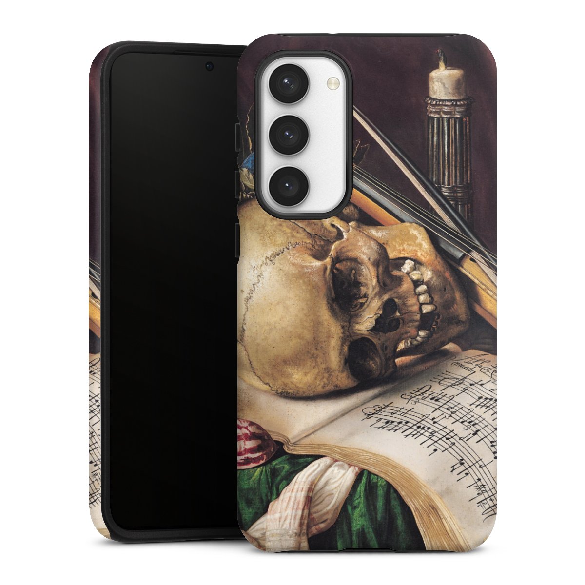 Bei dieser Handyhülle nutzen wird den besonders langlebigen Sublimationsdruck. Dieses raffinierte Druckverfahren sticht durch sein hochwertiges, gestochen scharfes Druckbild in brillanten Farben hervor. Der Druckbereich umfasst die ganze Hartschale inklusive der Ecken und Kanten, lediglich der Silikon-Einleger bleibt einfarbig schwarz. Wähle für Dein Design entweder eines unserer exklusiven Shop-Motive, oder werde kreativ und gestalte Dein Wunschdesign zum Beispiel mit Fotos und Overlays selbst.