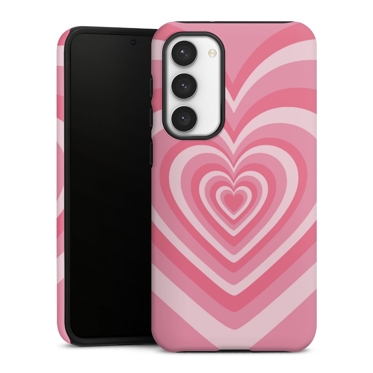 Bei dieser Handyhülle nutzen wird den besonders langlebigen Sublimationsdruck. Dieses raffinierte Druckverfahren sticht durch sein hochwertiges, gestochen scharfes Druckbild in brillanten Farben hervor. Der Druckbereich umfasst die ganze Hartschale inklusive der Ecken und Kanten, lediglich der Silikon-Einleger bleibt einfarbig schwarz. Wähle für Dein Design entweder eines unserer exklusiven Shop-Motive, oder werde kreativ und gestalte Dein Wunschdesign zum Beispiel mit Fotos und Overlays selbst.