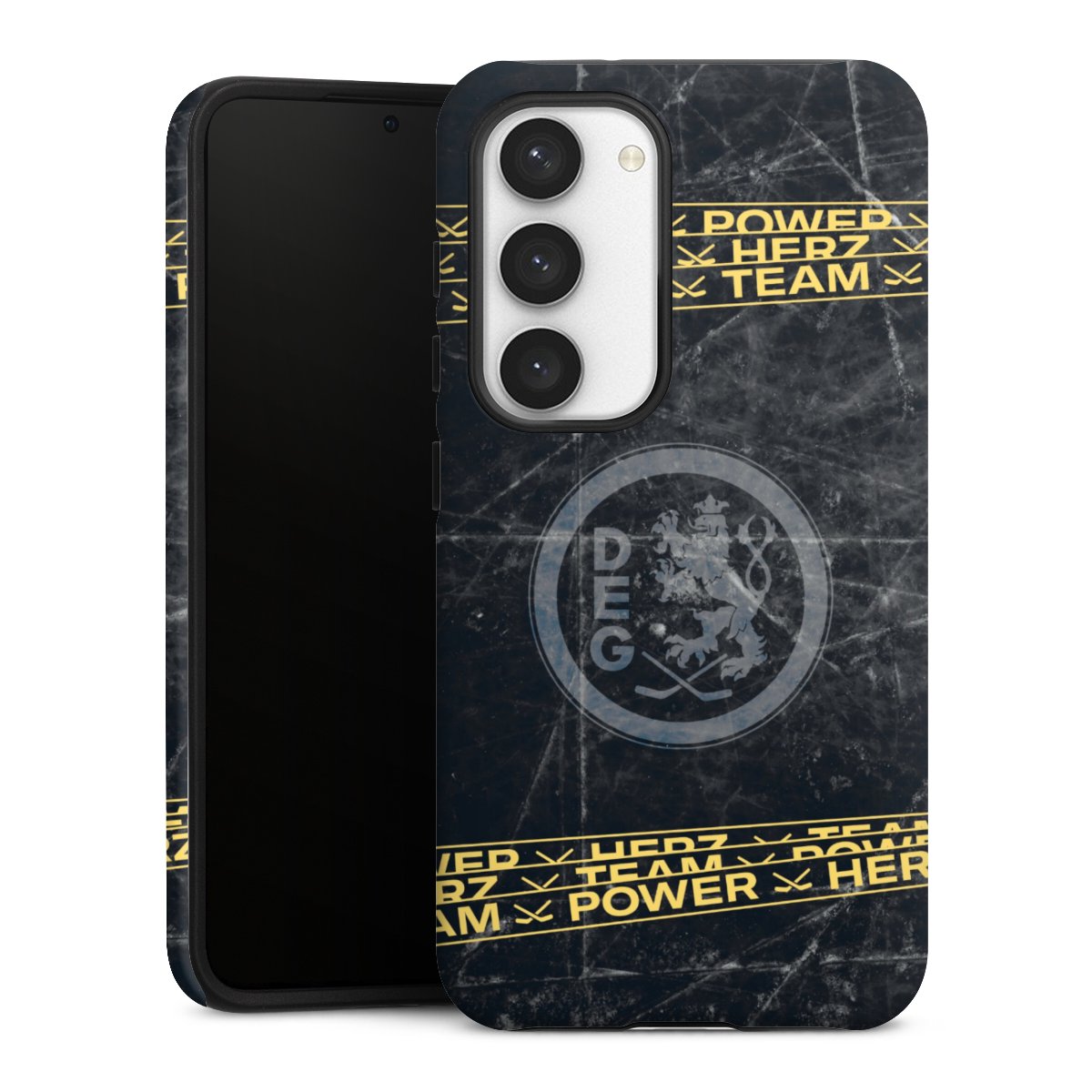 Bei dieser Handyhülle nutzen wird den besonders langlebigen Sublimationsdruck. Dieses raffinierte Druckverfahren sticht durch sein hochwertiges, gestochen scharfes Druckbild in brillanten Farben hervor. Der Druckbereich umfasst die ganze Hartschale inklusive der Ecken und Kanten, lediglich der Silikon-Einleger bleibt einfarbig schwarz. Wähle für Dein Design entweder eines unserer exklusiven Shop-Motive, oder werde kreativ und gestalte Dein Wunschdesign zum Beispiel mit Fotos und Overlays selbst.