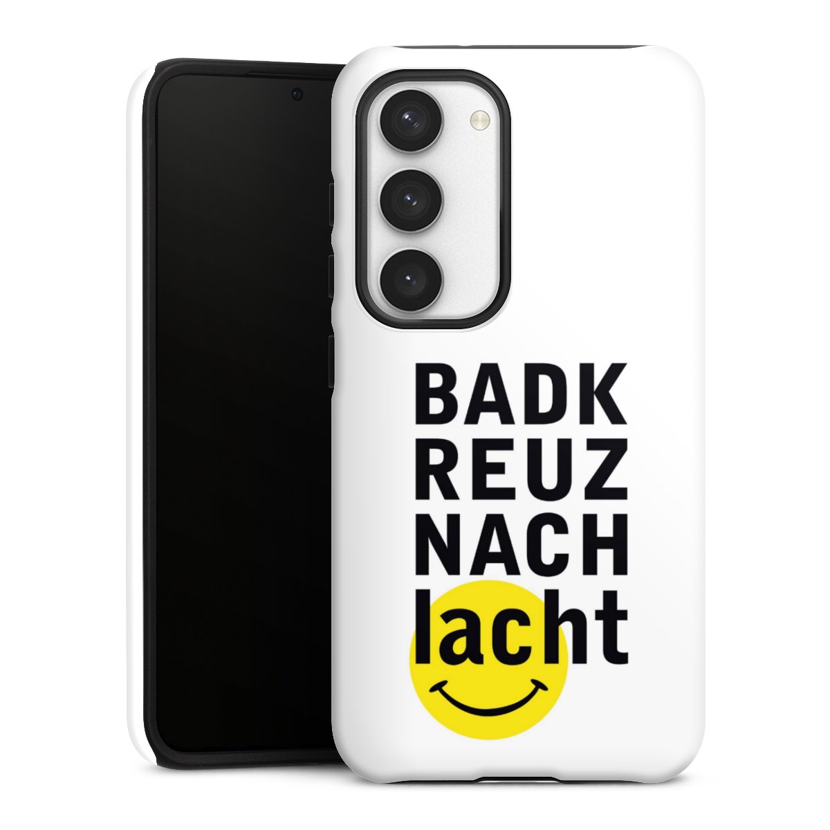 Bei dieser Handyhülle nutzen wird den besonders langlebigen Sublimationsdruck. Dieses raffinierte Druckverfahren sticht durch sein hochwertiges, gestochen scharfes Druckbild in brillanten Farben hervor. Der Druckbereich umfasst die ganze Hartschale inklusive der Ecken und Kanten, lediglich der Silikon-Einleger bleibt einfarbig schwarz. Wähle für Dein Design entweder eines unserer exklusiven Shop-Motive, oder werde kreativ und gestalte Dein Wunschdesign zum Beispiel mit Fotos und Overlays selbst.