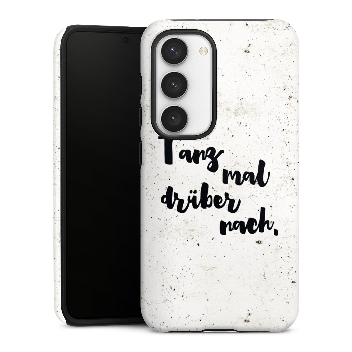 Bei dieser Handyhülle nutzen wird den besonders langlebigen Sublimationsdruck. Dieses raffinierte Druckverfahren sticht durch sein hochwertiges, gestochen scharfes Druckbild in brillanten Farben hervor. Der Druckbereich umfasst die ganze Hartschale inklusive der Ecken und Kanten, lediglich der Silikon-Einleger bleibt einfarbig schwarz. Wähle für Dein Design entweder eines unserer exklusiven Shop-Motive, oder werde kreativ und gestalte Dein Wunschdesign zum Beispiel mit Fotos und Overlays selbst.