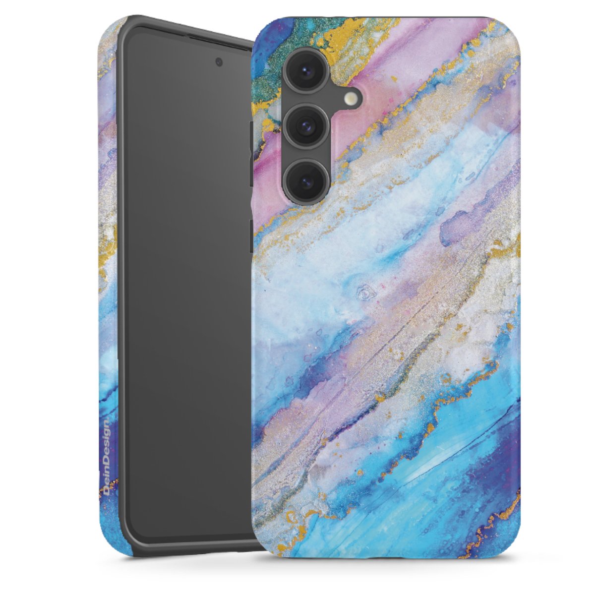 Bei dieser Handyhülle nutzen wird den besonders langlebigen Sublimationsdruck. Dieses raffinierte Druckverfahren sticht durch sein hochwertiges, gestochen scharfes Druckbild in brillanten Farben hervor. Der Druckbereich umfasst die ganze Hartschale inklusive der Ecken und Kanten, lediglich der Silikon-Einleger bleibt einfarbig schwarz. Wähle für Dein Design entweder eines unserer exklusiven Shop-Motive, oder werde kreativ und gestalte Dein Wunschdesign zum Beispiel mit Fotos und Overlays selbst.