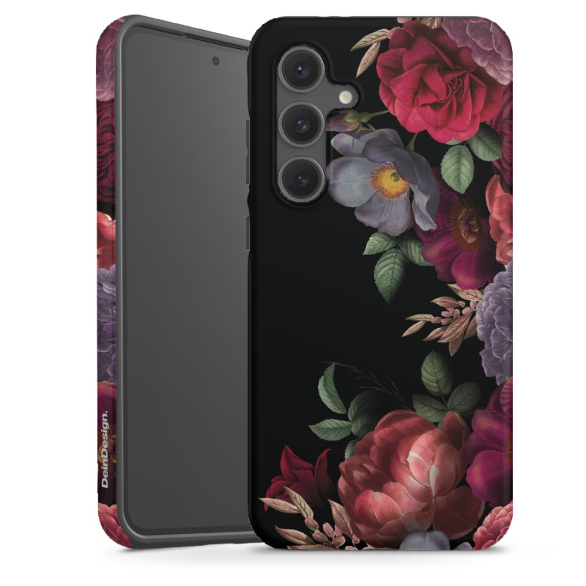 Bei dieser Handyhülle nutzen wird den besonders langlebigen Sublimationsdruck. Dieses raffinierte Druckverfahren sticht durch sein hochwertiges, gestochen scharfes Druckbild in brillanten Farben hervor. Der Druckbereich umfasst die ganze Hartschale inklusive der Ecken und Kanten, lediglich der Silikon-Einleger bleibt einfarbig schwarz. Wähle für Dein Design entweder eines unserer exklusiven Shop-Motive, oder werde kreativ und gestalte Dein Wunschdesign zum Beispiel mit Fotos und Overlays selbst.