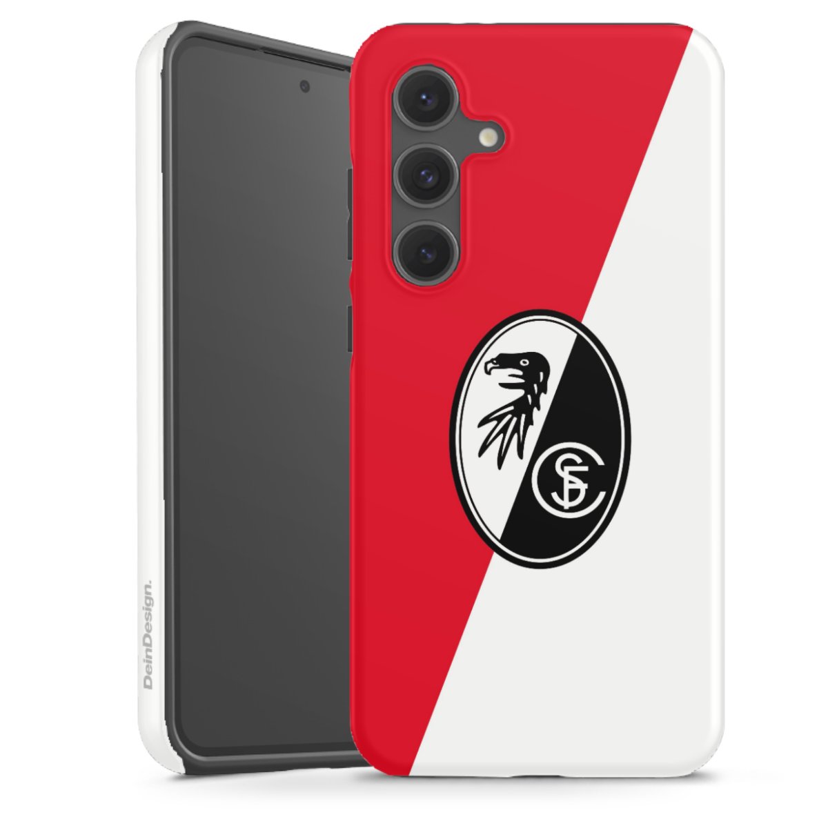 Bei DeinDesign kannst Du Dir eine individuelle SC-Freiburg-Handyhülle aussuchen, auf der das stilvolle schwarz-weiße Logo mit dem Greifenkopf zu sehen ist. Durch eine solche Hülle erhält Dein Smartphone ein unverkennbar individuelles Design. Der SC-Freiburg-Shop bietet lizensierte Fanartikel für alle Fans der Breisgau-Brasilianer.