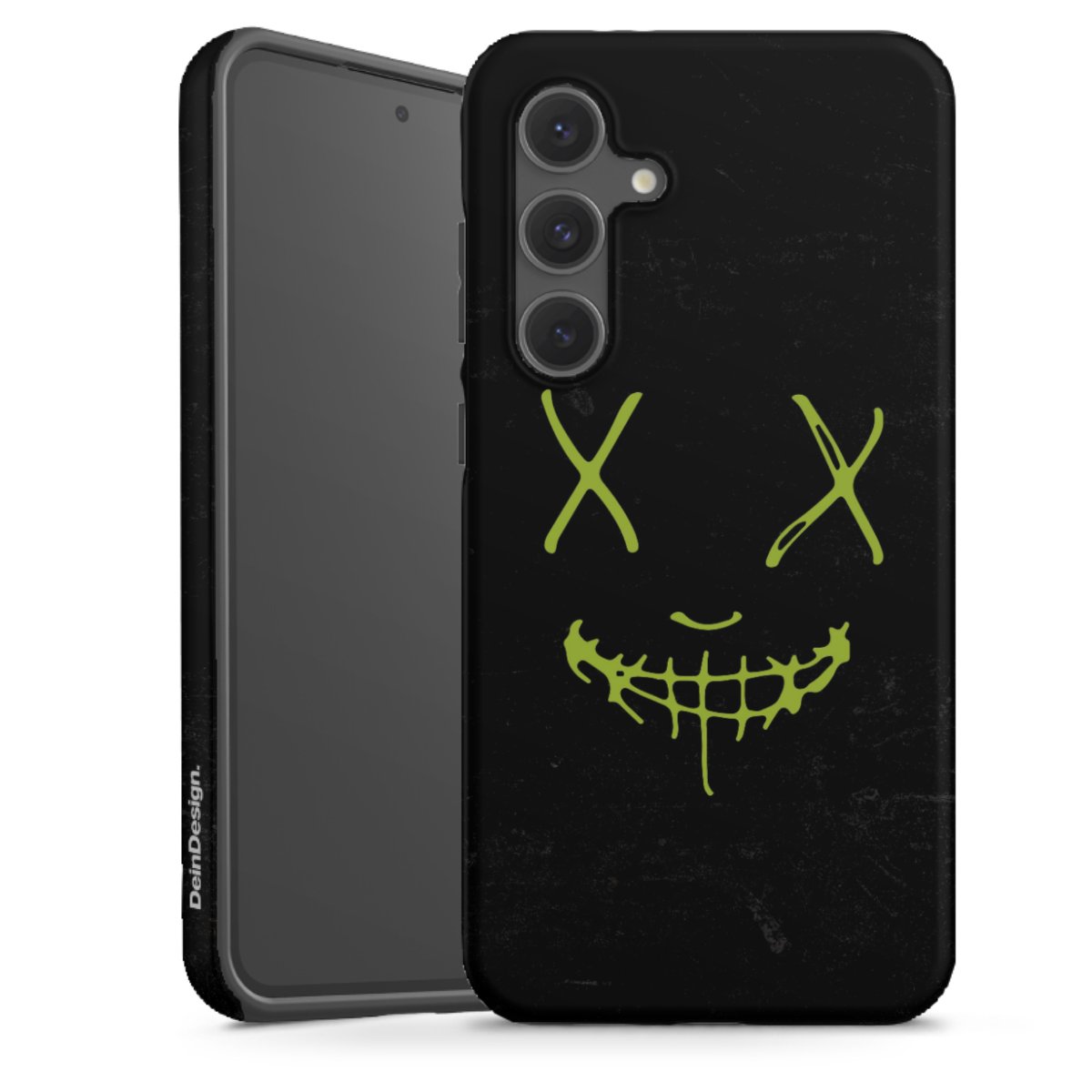 Bei dieser Handyhülle nutzen wird den besonders langlebigen Sublimationsdruck. Dieses raffinierte Druckverfahren sticht durch sein hochwertiges, gestochen scharfes Druckbild in brillanten Farben hervor. Der Druckbereich umfasst die ganze Hartschale inklusive der Ecken und Kanten, lediglich der Silikon-Einleger bleibt einfarbig schwarz. Wähle für Dein Design entweder eines unserer exklusiven Shop-Motive, oder werde kreativ und gestalte Dein Wunschdesign zum Beispiel mit Fotos und Overlays selbst.