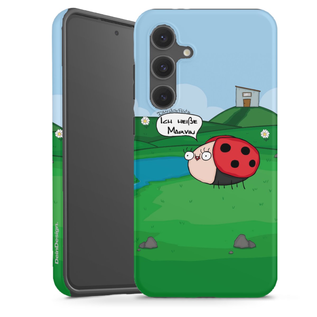 Ob Du Dich nun für Marvin, Günther das Schaf oder doch lieber für die dauerbekiffte Cannabiene entscheidest. Mit einem Motiv von DirtyWhitePaint wird Dein Smartphonen selbst zum Comic.
