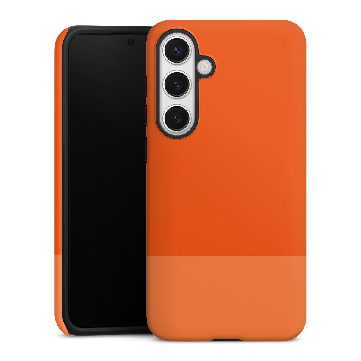 Unsere sicherste Schutzhülle vereint die Vorteile der Silikonhülle mit den Vorzügen des Premium Cases und besteht aus zwei Teilen: Innen federt der flexible Silikonkern aus robustem TPU (thermoplastisches Polyurethan) zuverlässig Stöße und Stürze ab, außen sorgt die widerstandsfähige und langlebige Hartschale aus Polycarbonat für zusätzliche Stabilität. Die Oberfläche der insgesamt 2,6 mm starken Hülle fühlt sich angenehm glatt an und macht das Tough Case zu einem echten Handschmeichler. Die Handyhülle ist in glänzend und matt erhältlich, der Silikoneinleger ist Schwarz.