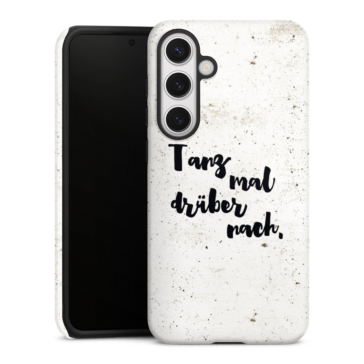 Bringe zuerst den Silikonkern an Dein Handy an, sodass alle Ecken umschlossen sind. Setze nun die Hartschale auf den Silikon-Einleger. Pflege-Tipp: Tough Cases lassen sich mit einem feuchten Tuch und mildem Reinigungsmittel säubern. Die glänzende Variante kannst du hin und wieder mit Glasreiniger einsprühen und mit einem Mikrofasertuch trocken polieren, damit sie so schön bleibt wie am Anfang.