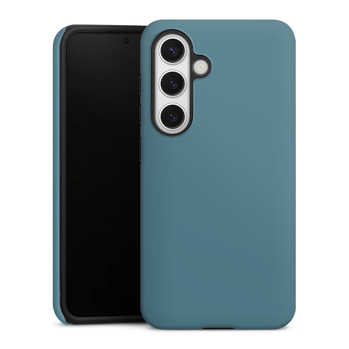 Unsere sicherste Schutzhülle vereint die Vorteile der Silikonhülle mit den Vorzügen des Premium Cases und besteht aus zwei Teilen: Innen federt der flexible Silikonkern aus robustem TPU (thermoplastisches Polyurethan) zuverlässig Stöße und Stürze ab, außen sorgt die widerstandsfähige und langlebige Hartschale aus Polycarbonat für zusätzliche Stabilität. Die Oberfläche der insgesamt 2,6 mm starken Hülle fühlt sich angenehm glatt an und macht das Tough Case zu einem echten Handschmeichler. Die Handyhülle ist in glänzend und matt erhältlich, der Silikoneinleger ist Schwarz.