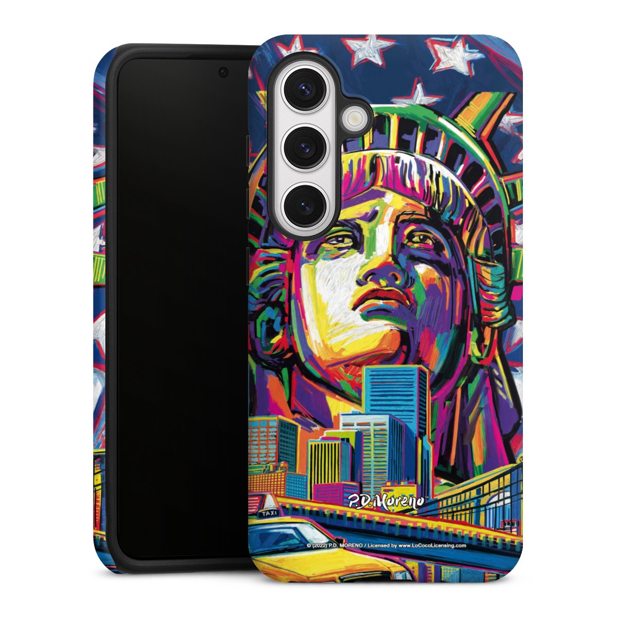 Bei dieser Handyhülle nutzen wird den besonders langlebigen Sublimationsdruck. Dieses raffinierte Druckverfahren sticht durch sein hochwertiges, gestochen scharfes Druckbild in brillanten Farben hervor. Der Druckbereich umfasst die ganze Hartschale inklusive der Ecken und Kanten, lediglich der Silikon-Einleger bleibt einfarbig schwarz. Wähle für Dein Design entweder eines unserer exklusiven Shop-Motive, oder werde kreativ und gestalte Dein Wunschdesign zum Beispiel mit Fotos und Overlays selbst.