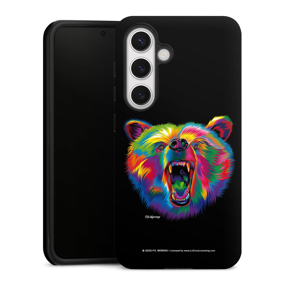 Bei dieser Handyhülle nutzen wird den besonders langlebigen Sublimationsdruck. Dieses raffinierte Druckverfahren sticht durch sein hochwertiges, gestochen scharfes Druckbild in brillanten Farben hervor. Der Druckbereich umfasst die ganze Hartschale inklusive der Ecken und Kanten, lediglich der Silikon-Einleger bleibt einfarbig schwarz. Wähle für Dein Design entweder eines unserer exklusiven Shop-Motive, oder werde kreativ und gestalte Dein Wunschdesign zum Beispiel mit Fotos und Overlays selbst.