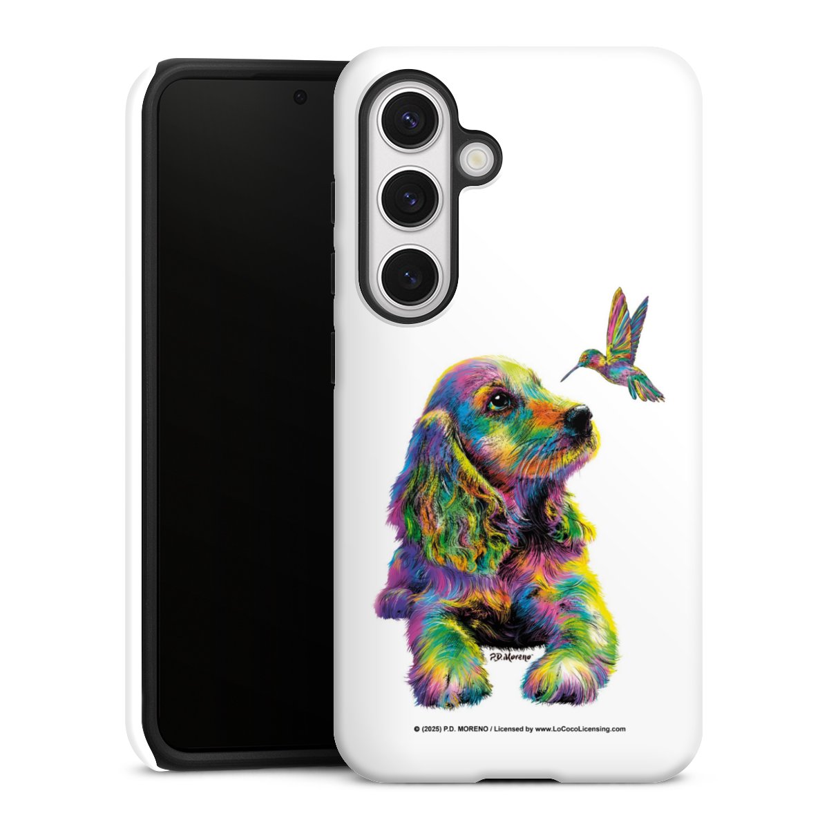 Bei dieser Handyhülle nutzen wird den besonders langlebigen Sublimationsdruck. Dieses raffinierte Druckverfahren sticht durch sein hochwertiges, gestochen scharfes Druckbild in brillanten Farben hervor. Der Druckbereich umfasst die ganze Hartschale inklusive der Ecken und Kanten, lediglich der Silikon-Einleger bleibt einfarbig schwarz. Wähle für Dein Design entweder eines unserer exklusiven Shop-Motive, oder werde kreativ und gestalte Dein Wunschdesign zum Beispiel mit Fotos und Overlays selbst.