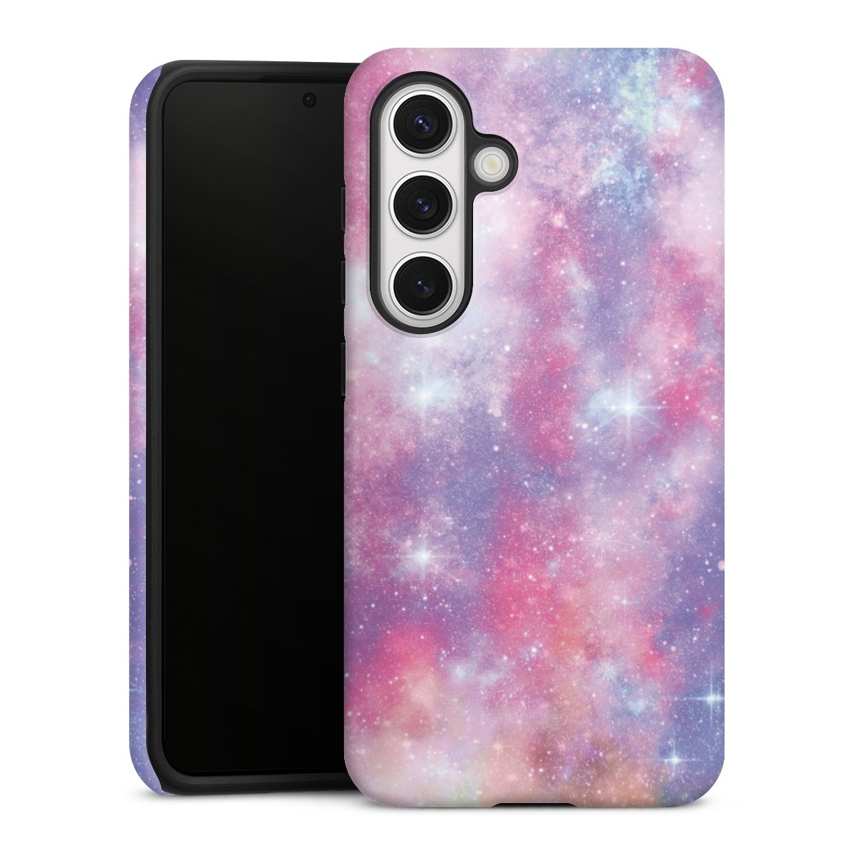 Bei dieser Handyhülle nutzen wird den besonders langlebigen Sublimationsdruck. Dieses raffinierte Druckverfahren sticht durch sein hochwertiges, gestochen scharfes Druckbild in brillanten Farben hervor. Der Druckbereich umfasst die ganze Hartschale inklusive der Ecken und Kanten, lediglich der Silikon-Einleger bleibt einfarbig schwarz. Wähle für Dein Design entweder eines unserer exklusiven Shop-Motive, oder werde kreativ und gestalte Dein Wunschdesign zum Beispiel mit Fotos und Overlays selbst.