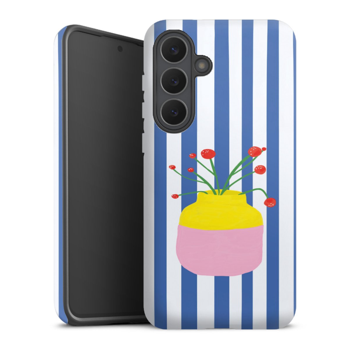 Bei dieser Handyhülle nutzen wird den besonders langlebigen Sublimationsdruck. Dieses raffinierte Druckverfahren sticht durch sein hochwertiges, gestochen scharfes Druckbild in brillanten Farben hervor. Der Druckbereich umfasst die ganze Hartschale inklusive der Ecken und Kanten, lediglich der Silikon-Einleger bleibt einfarbig schwarz. Wähle für Dein Design entweder eines unserer exklusiven Shop-Motive, oder werde kreativ und gestalte Dein Wunschdesign zum Beispiel mit Fotos und Overlays selbst.