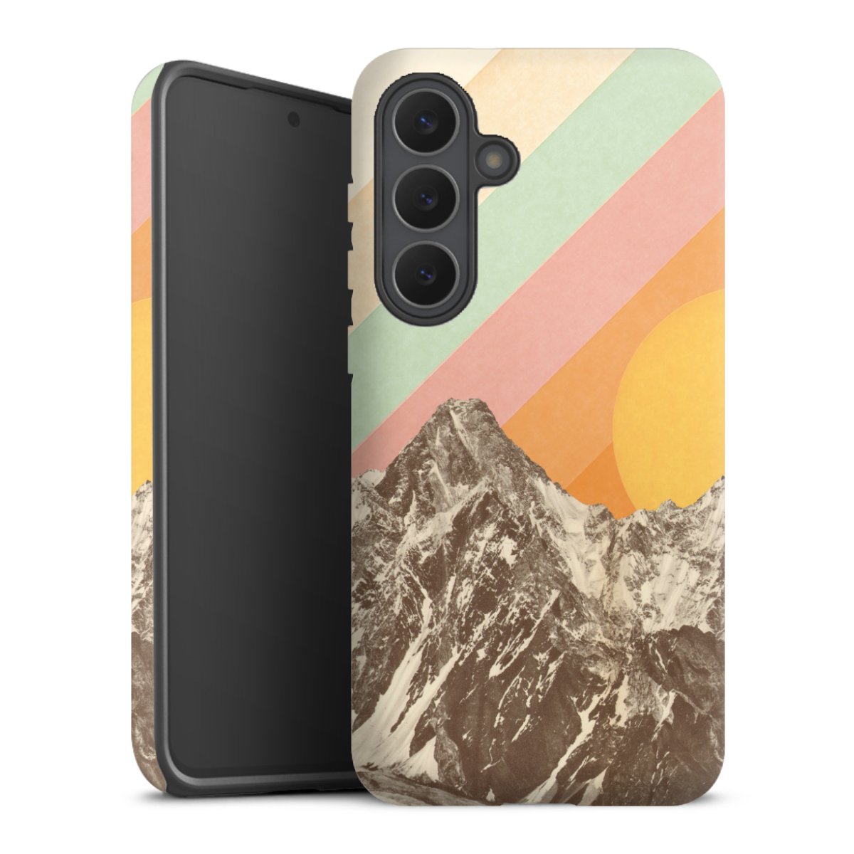 Bei dieser Handyhülle nutzen wird den besonders langlebigen Sublimationsdruck. Dieses raffinierte Druckverfahren sticht durch sein hochwertiges, gestochen scharfes Druckbild in brillanten Farben hervor. Der Druckbereich umfasst die ganze Hartschale inklusive der Ecken und Kanten, lediglich der Silikon-Einleger bleibt einfarbig schwarz. Wähle für Dein Design entweder eines unserer exklusiven Shop-Motive, oder werde kreativ und gestalte Dein Wunschdesign zum Beispiel mit Fotos und Overlays selbst.