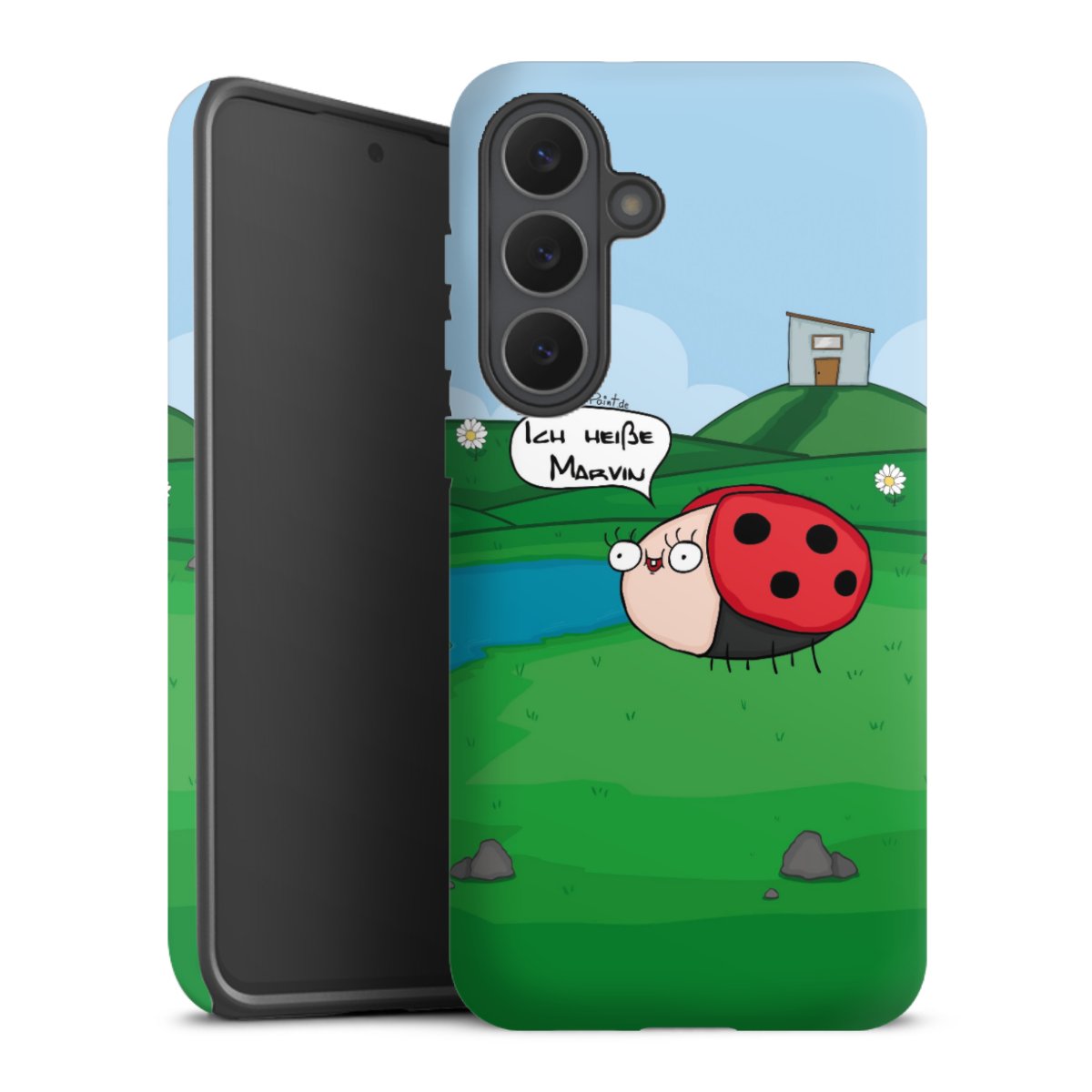 Ob Du Dich nun für Marvin, Günther das Schaf oder doch lieber für die dauerbekiffte Cannabiene entscheidest. Mit einem Motiv von DirtyWhitePaint wird Dein Smartphonen selbst zum Comic.