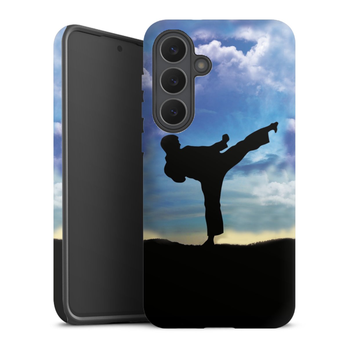 Bei dieser Handyhülle nutzen wird den besonders langlebigen Sublimationsdruck. Dieses raffinierte Druckverfahren sticht durch sein hochwertiges, gestochen scharfes Druckbild in brillanten Farben hervor. Der Druckbereich umfasst die ganze Hartschale inklusive der Ecken und Kanten, lediglich der Silikon-Einleger bleibt einfarbig schwarz. Wähle für Dein Design entweder eines unserer exklusiven Shop-Motive, oder werde kreativ und gestalte Dein Wunschdesign zum Beispiel mit Fotos und Overlays selbst.