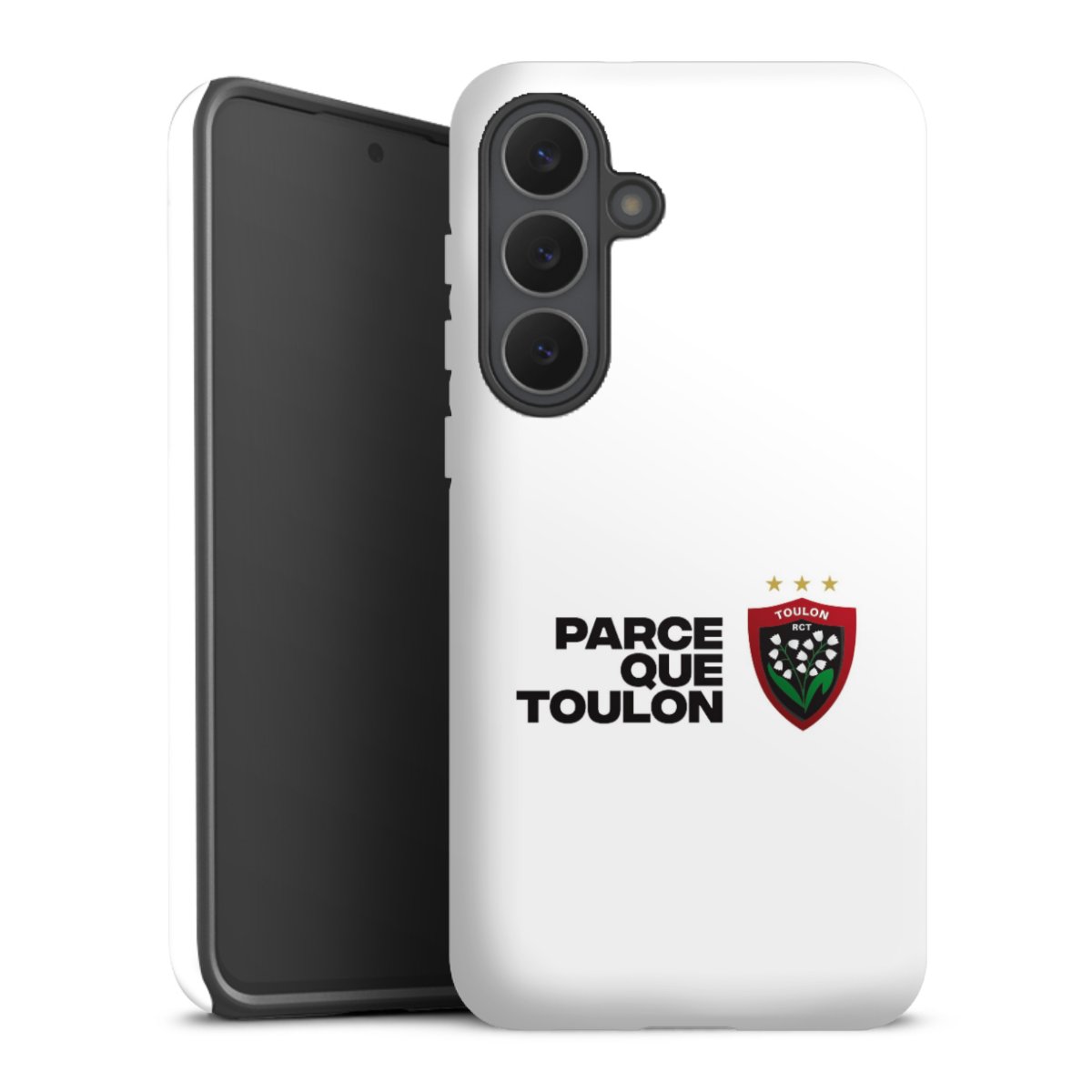 Unsere sicherste Schutzhülle vereint die Vorteile der Silikonhülle mit den Vorzügen des Premium Cases und besteht aus zwei Teilen: Innen federt der flexible Silikonkern aus robustem TPU (thermoplastisches Polyurethan) zuverlässig Stöße und Stürze ab, außen sorgt die widerstandsfähige und langlebige Hartschale aus Polycarbonat für zusätzliche Stabilität. Die Oberfläche der insgesamt 2,6 mm starken Hülle fühlt sich angenehm glatt an und macht das Tough Case zu einem echten Handschmeichler. Die Handyhülle ist in glänzend und matt erhältlich, der Silikoneinleger ist Schwarz.