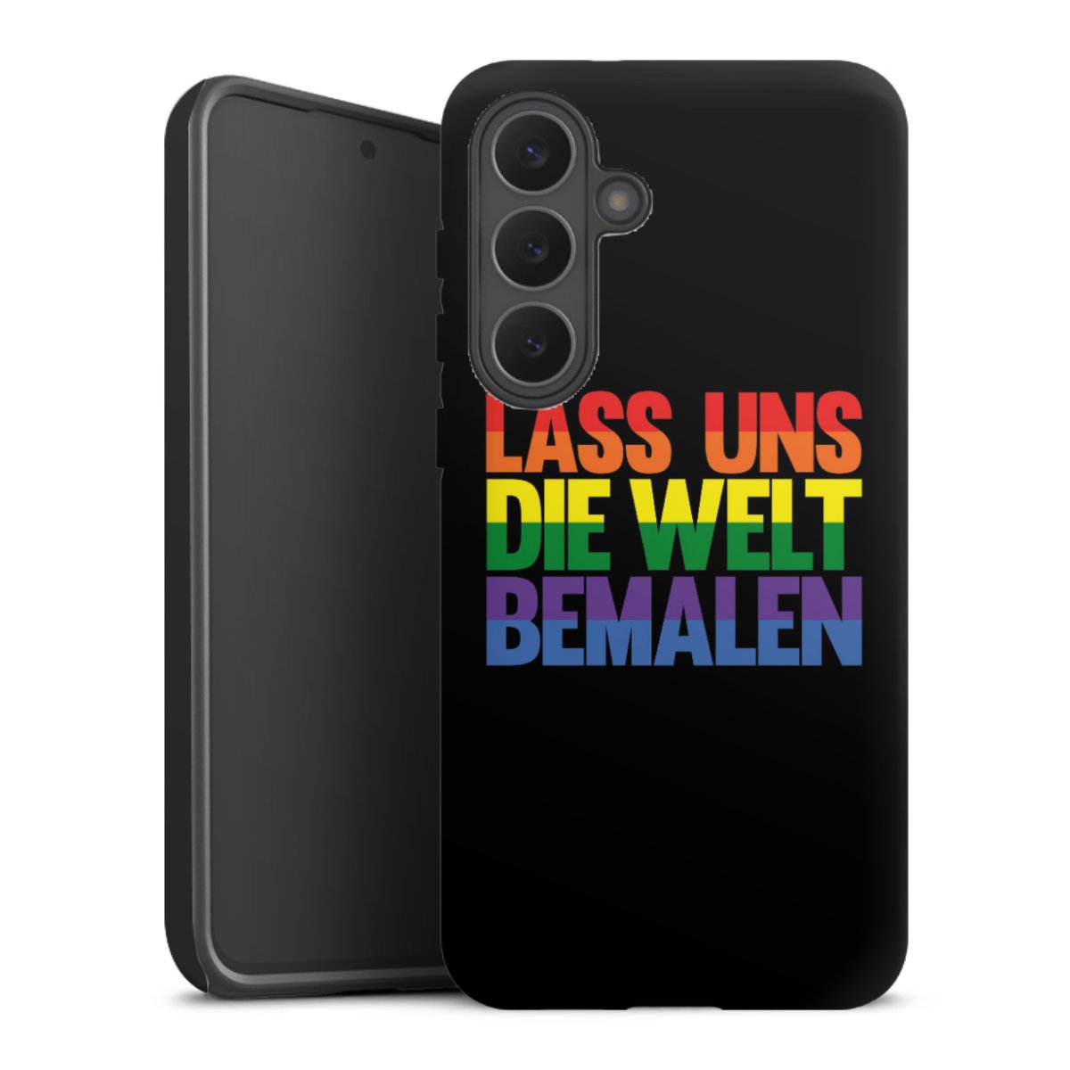 Bei dieser Handyhülle nutzen wird den besonders langlebigen Sublimationsdruck. Dieses raffinierte Druckverfahren sticht durch sein hochwertiges, gestochen scharfes Druckbild in brillanten Farben hervor. Der Druckbereich umfasst die ganze Hartschale inklusive der Ecken und Kanten, lediglich der Silikon-Einleger bleibt einfarbig schwarz. Wähle für Dein Design entweder eines unserer exklusiven Shop-Motive, oder werde kreativ und gestalte Dein Wunschdesign zum Beispiel mit Fotos und Overlays selbst.