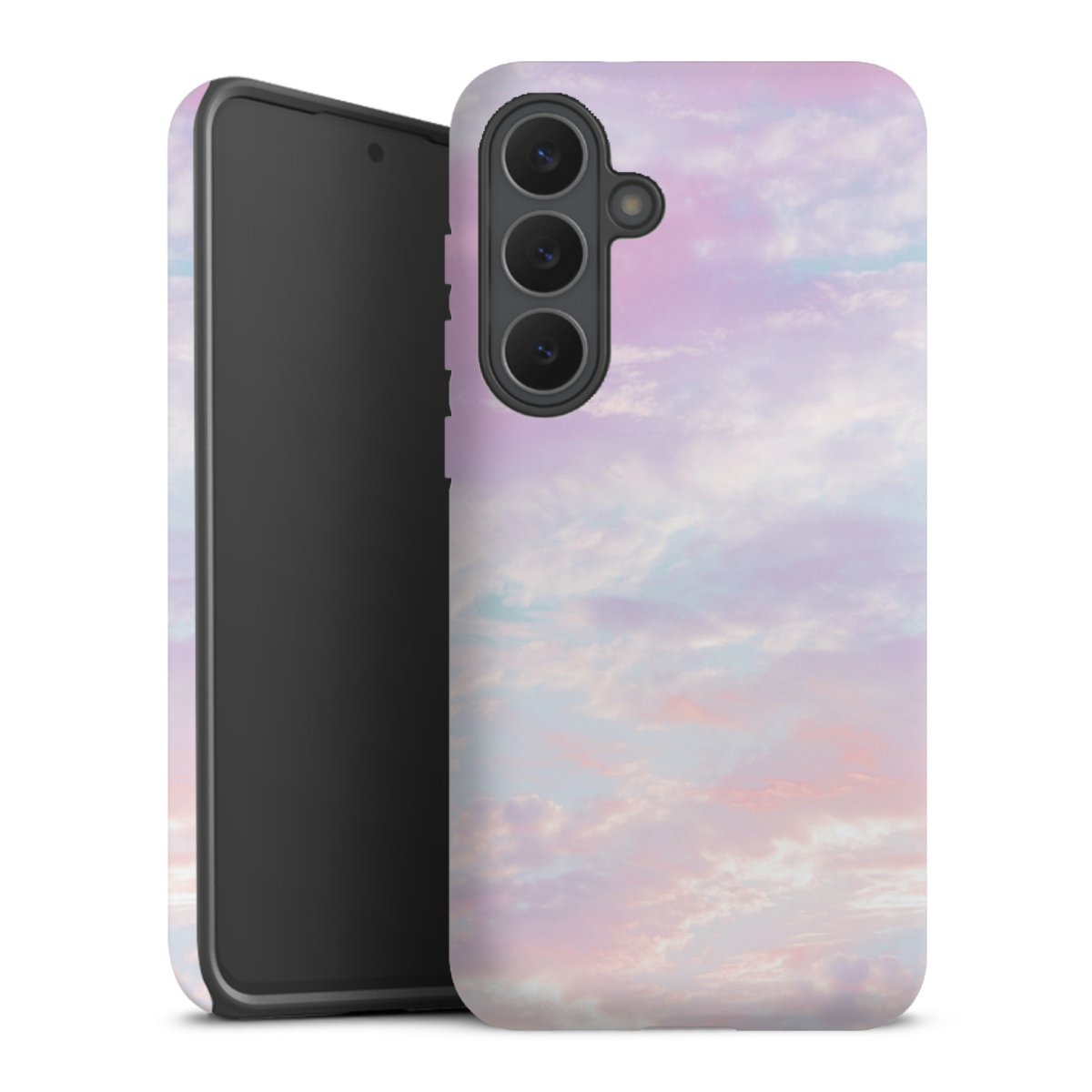 Bei dieser Handyhülle nutzen wird den besonders langlebigen Sublimationsdruck. Dieses raffinierte Druckverfahren sticht durch sein hochwertiges, gestochen scharfes Druckbild in brillanten Farben hervor. Der Druckbereich umfasst die ganze Hartschale inklusive der Ecken und Kanten, lediglich der Silikon-Einleger bleibt einfarbig schwarz. Wähle für Dein Design entweder eines unserer exklusiven Shop-Motive, oder werde kreativ und gestalte Dein Wunschdesign zum Beispiel mit Fotos und Overlays selbst.