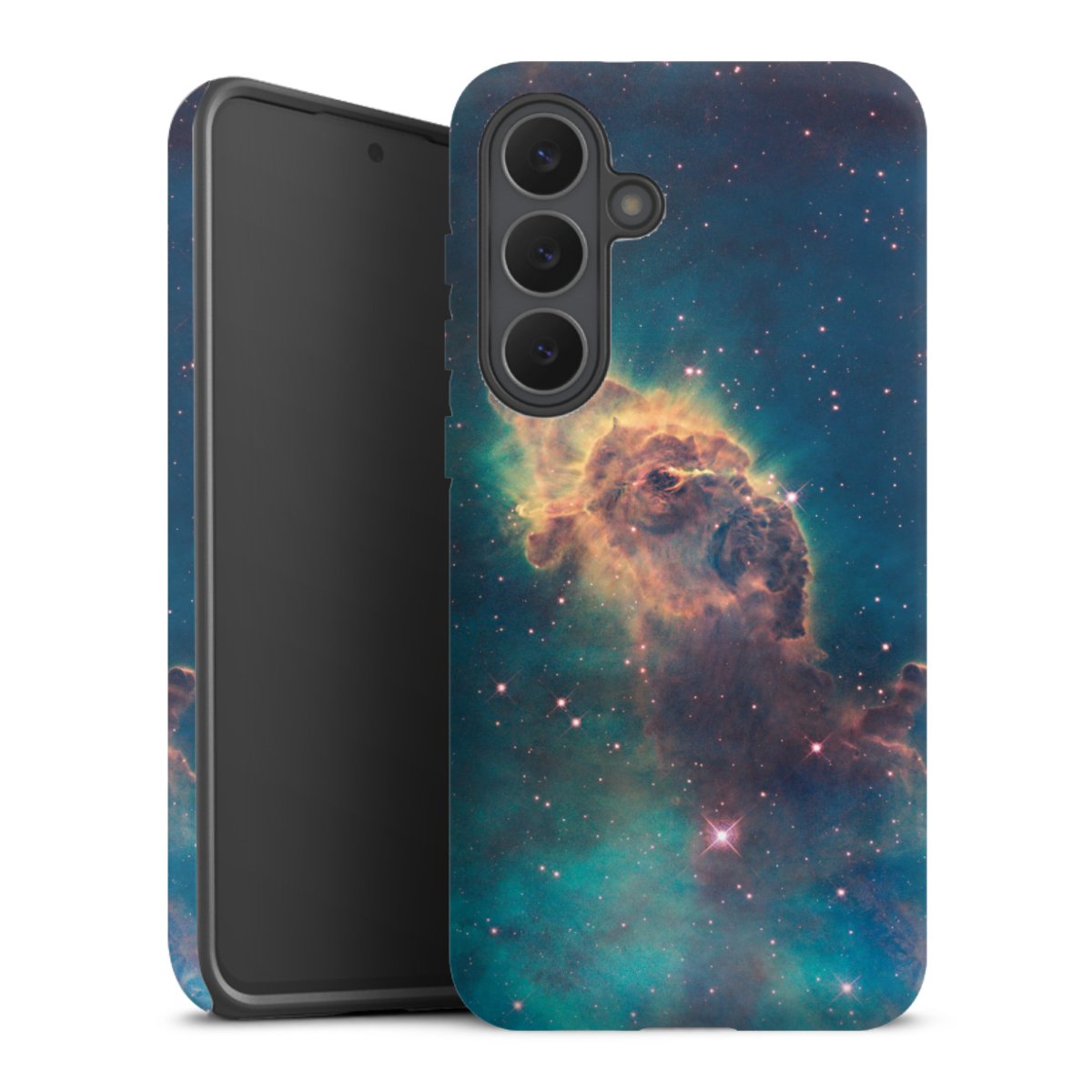 Bei dieser Handyhülle nutzen wird den besonders langlebigen Sublimationsdruck. Dieses raffinierte Druckverfahren sticht durch sein hochwertiges, gestochen scharfes Druckbild in brillanten Farben hervor. Der Druckbereich umfasst die ganze Hartschale inklusive der Ecken und Kanten, lediglich der Silikon-Einleger bleibt einfarbig schwarz. Wähle für Dein Design entweder eines unserer exklusiven Shop-Motive, oder werde kreativ und gestalte Dein Wunschdesign zum Beispiel mit Fotos und Overlays selbst.
